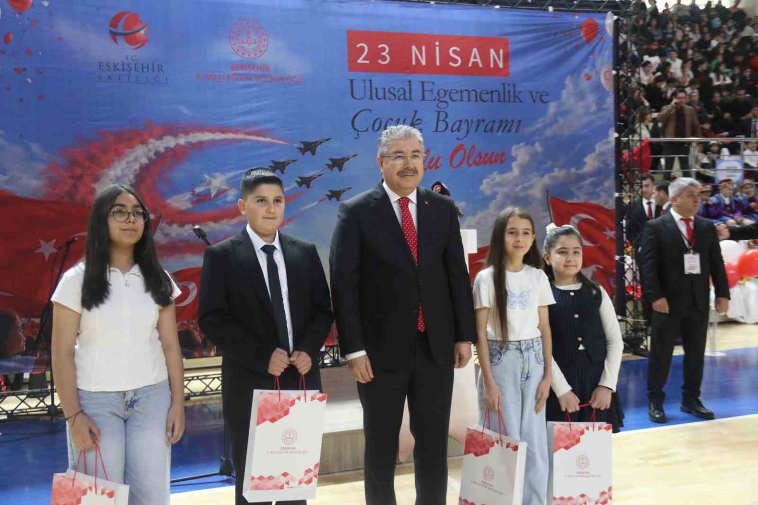 Eskişehir’de 23 Nisan Ulusal Egemenlik ve Çocuk Bayramı, Şehit Anıl Gül Spor Salonu’nda düzenlenen, protokol üyeleri ve çok sayıda vatandaşın katıldığı renkli gösterilerle coşkuyla kutlandı.