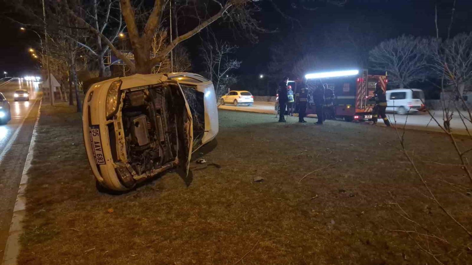 Olay, saat 22.00 sıralarında Sümer Mahallesi Ulusal Egemenlik Bulvarı’nda meydana geldi. Edinilen bilgilere göre, Sazova Mahallesi istikametine doğru seyir halinde olan E.B. (21) idaresindeki 05 AAV 683 plakalı otomobil, sürücüsünün kontrolünden çıktı. Refüje girip takla atan araç, bir ağaca çarptıktan sonra yan yattı. Kazada yaralanan sürücü araçta sıkıştı.