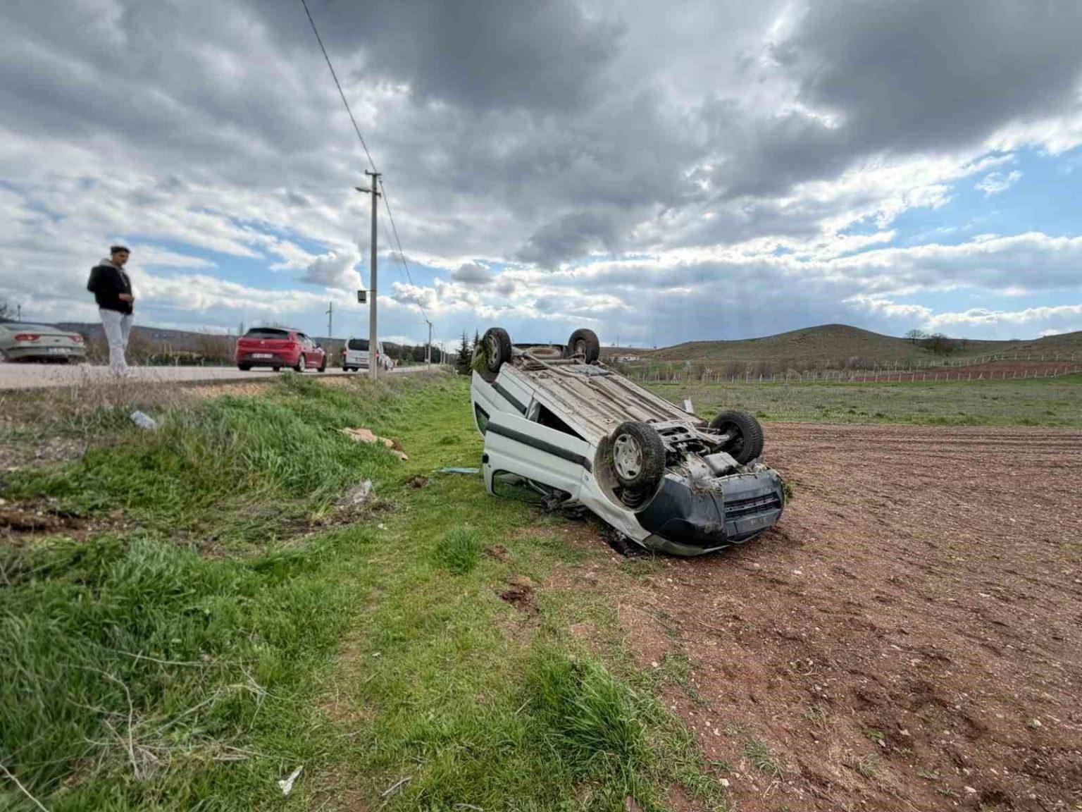 Eskişehir’de savrularak kontrolden çıkan hafif ticari panelvan ters döndükten sonra durabilirken, araçta bulunan 2 kişi hafif yaralandı.