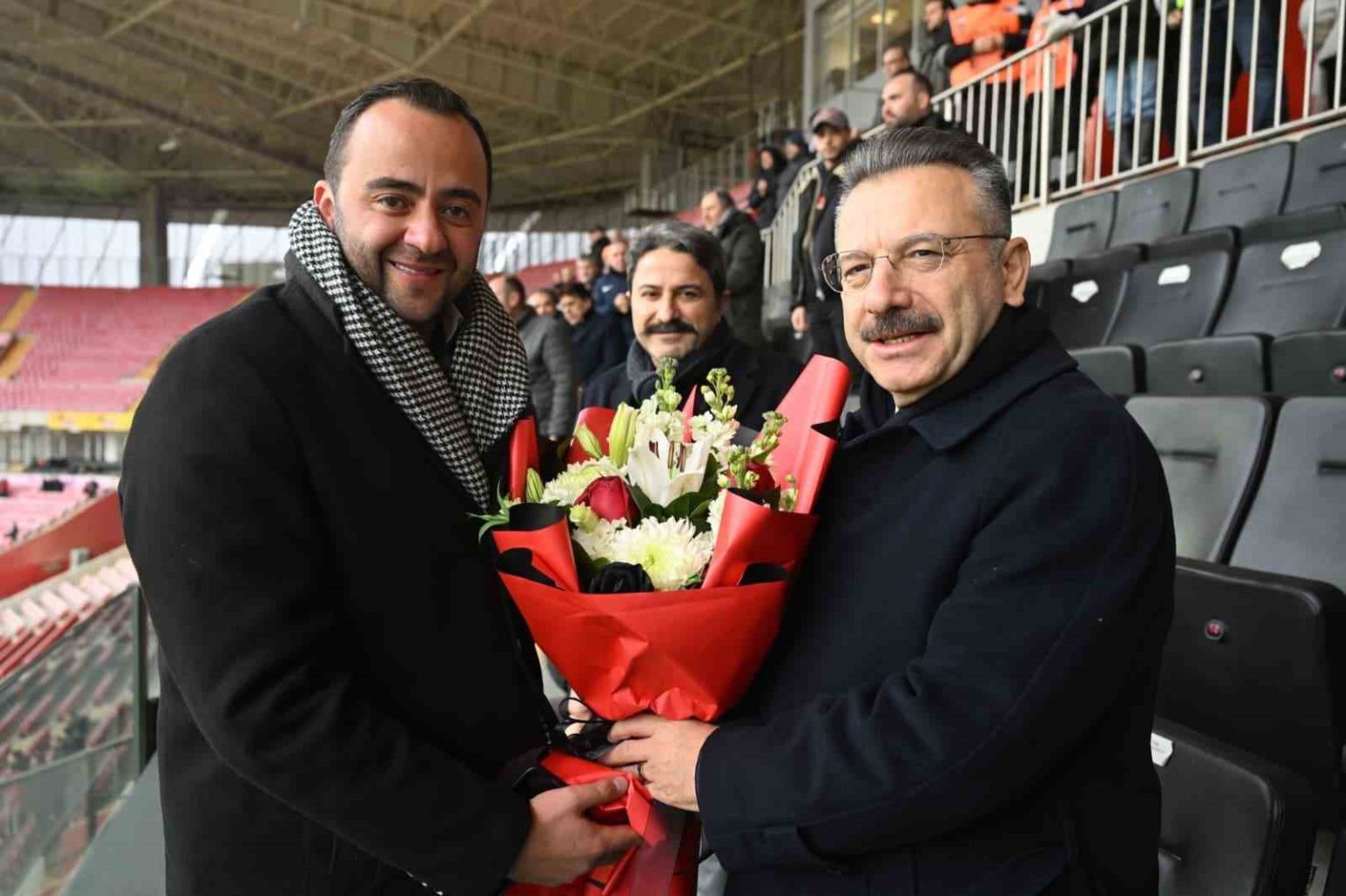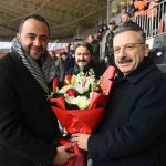 Mülkiye Başmüfettişliği görevine atanan Eskişehir Valisi Hüseyin Aksoy’a Eskişehirspor-Anadolu Üniversitesi karşılaşmasının sonunda siyah-kırmızılı camia katkıları için teşekkür etti.