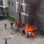 Alevleri fark eden site sakinleri ve eşya taşıma görevlileri, zamanla yarışarak eşyaları vinçten tahliye etmeye başladı. İtfaiye ekipleri gelene kadar bazı vatandaşlar, su dolu damacanalarla yangını söndürmeye çalıştı. O anlar cep telefonu kameralarına yansıdı.