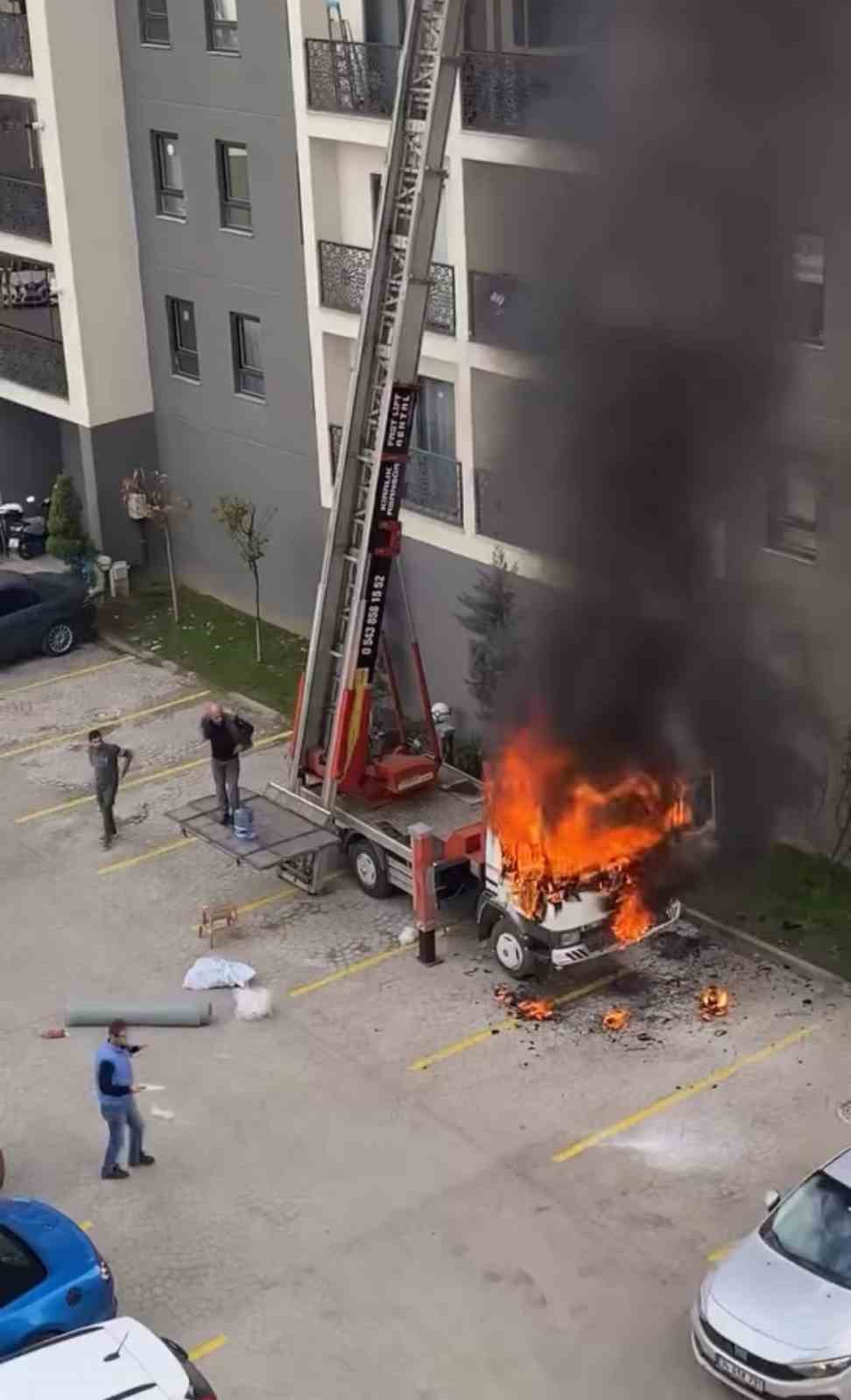 Yangın, Osmangazi ilçesi Demirtaş Mahallesi’nde bulunan bir site içerisinde meydana geldi. Edinilen bilgiye göre, bir apartman dairesinden eşya almak için kullanılan vinç, henüz belirlenemeyen bir nedenle alev aldı. Kısa sürede büyüyen alevler aracı sararken, olay yerinde büyük panik yaşandı.