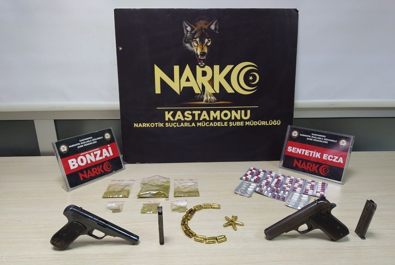 Edinilen bilgiye göre, Kastamonu İl Emniyet Müdürlüğü Narkotik Suçlarla Mücadele Şube Müdürlüğü ekiplerince, uyuşturucu madde kullanan ve satan şahıslara yönelik yapılan çalışmalar kapsamında 18 Ekim 2021 tarihinde Budamış Mahallesi’nde bulunan bir eve operasyon düzenlendi. Yapılan aramalarda 41,34 gram sentetik kannabinoid, 78 adet reçeteye tabi hap, 2 adet ruhsatsız tabanca, 2 adet şarjör ve 28 adet tabanca fişeği ele geçirildi. Operasyonda M.S., F.Ö. ve Ö.K. gözaltına alındı. Emniyetteki işlemlerinin ardından adliyeye sevk edilen sanıklar tutuklandı.