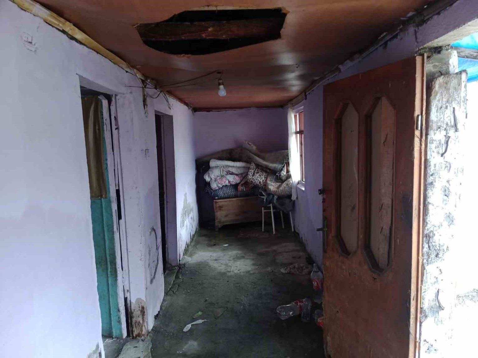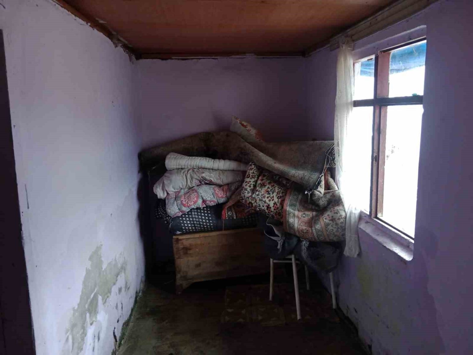 Lojmanda geçici olarak kalmaya başladıklarını ifade eden Tuncay Yılmaz, “Her yağmur yağdığında evimizi su basıyor. Yaşlı ve hasta annemle birlikte mecburen burada kalıyorduk. Son yağmur sonrası oluşan su baskını nedeniyle tüm eşyalarımız kullanılamaz hale geldi. Evde soba bile kuramıyoruz. Çatı da çökmek üzere. Duvarlar da su geçiriyor. Kaymakamlık tarafından geçici olarak cami lojmanına yerleştirildik. Önümüzde zorlu bir kış var” dedi.