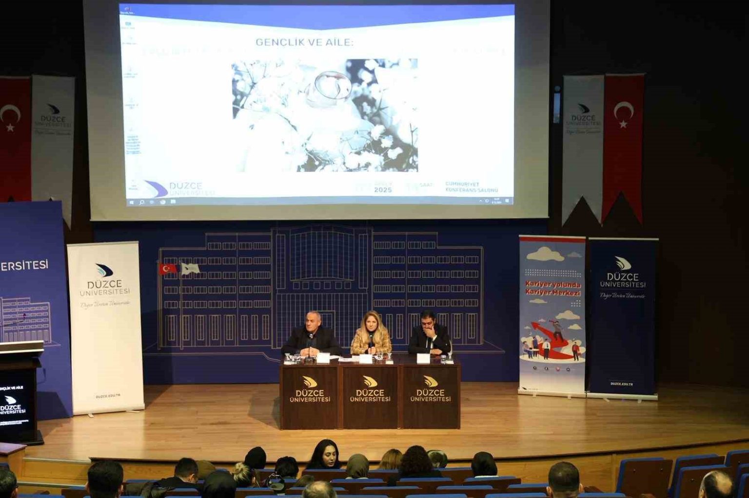 Düzce Üniversitesi Çocuk ve Gençlik Eğitimi Uygulama ve Araştırma Merkezi ile Kariyer Geliştirme ve Mezun İzleme Uygulama ve Araştırma Merkezi iş birliğinde, güncel veriler ışığında yeni bakış açıları geliştirmek ve gençlerin beklentilerini daha iyi anlamaya katkı sunmak amacıyla düzenlenen, “Gençlik ve Aile: Evlilikte Değişen Dinamikler, Üniversite Gençliğinin Evlilik Algısı” başlıklı panel gerçekleştirildi.