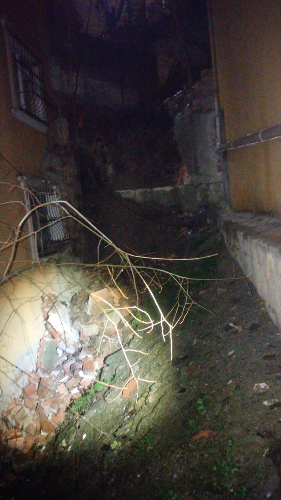 İstanbul’un Eyüpsultan ilçesinde 5 katlı binanın bitişiğindeki istinat duvarı yağışın da etkisiyle çökerken, duvardan düşen parçalar giriş katta bulunan bir dairede hasara yol açtı. Öte yandan çöken istinat duvarı havadan görüntülendi.