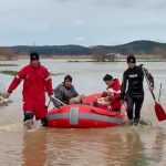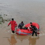 Çanakkale’nin Ezine ilçesinde sağanak yağış nedeniyle Menderes Çayı taştı. Hayvan kışlasında mahsur kalan Şahin Avcı, polis su altı arama ve kurtarma, Ezine Belediyesi itfaiye ve zabıta ekipleri tarafından yeni doğan 2 kuzu ile kurtarıldı. Kurtarma anı dronla görüntülendi.