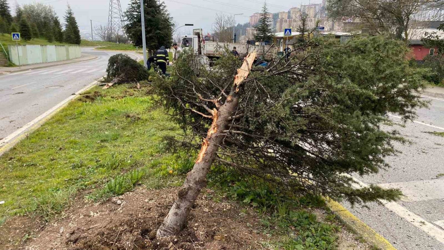 Kaza nedeniyle bulvarın tek şeridi trafiğe kapatılarak ulaşım kontrollü olarak sağlandı. Bölgeye yönlendirilen Büyükşehir Belediyesi A Takımı ekiplerinin yola saçılan malzemeleri ve devrilen ağaçları kaldırmak için başlattığı temizlik çalışması sürüyor.