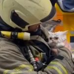 Ekiplerin yangına müdahalesi sırasında dumandan etkilenen bir kedi yangının sirayet ettiği binadan kurtarıldı. İtfaiye ekipleri tarafından kedi ambulansa götürülürken, dumandan etkilenen hayvana oksijen takviyesi yapıldı. Kedinin sahibin kucağında korkudan titrediği görüldü.