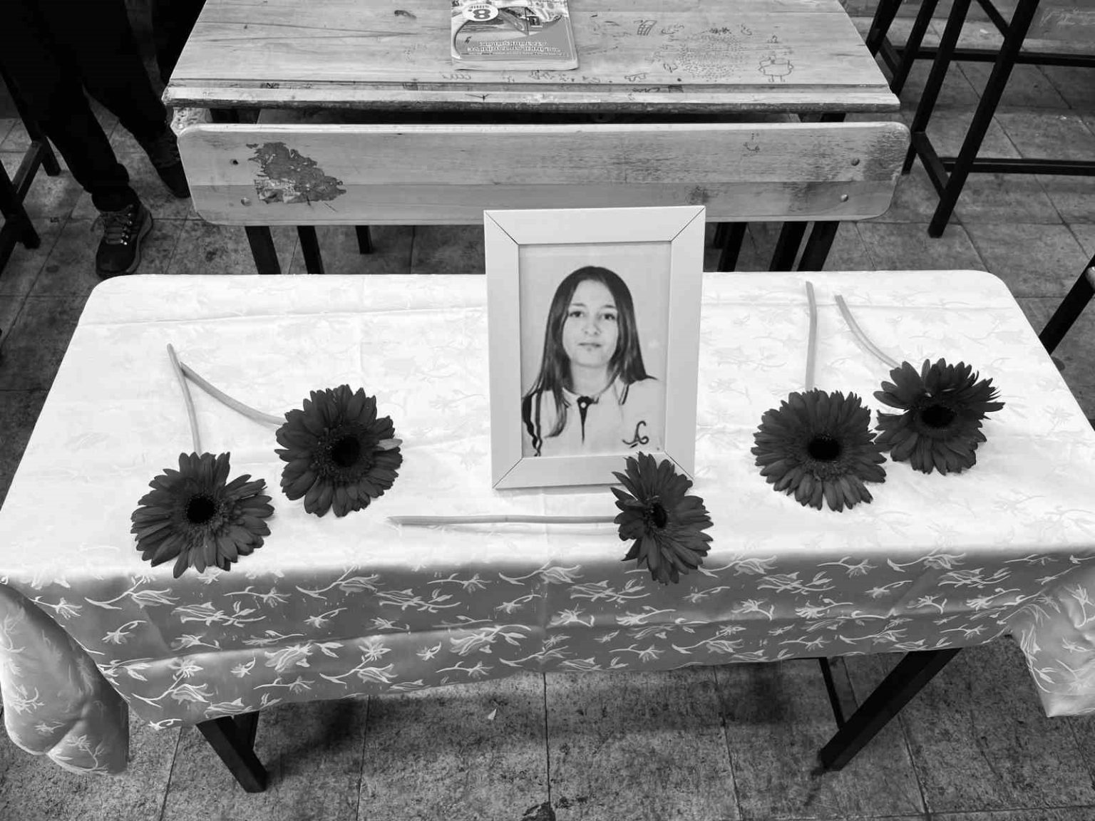 Öte yandan Ayşegül Seliti’nin fotoğrafı, okuduğu sınıfta oturmuş olduğu sıranın üzerine konuldu.