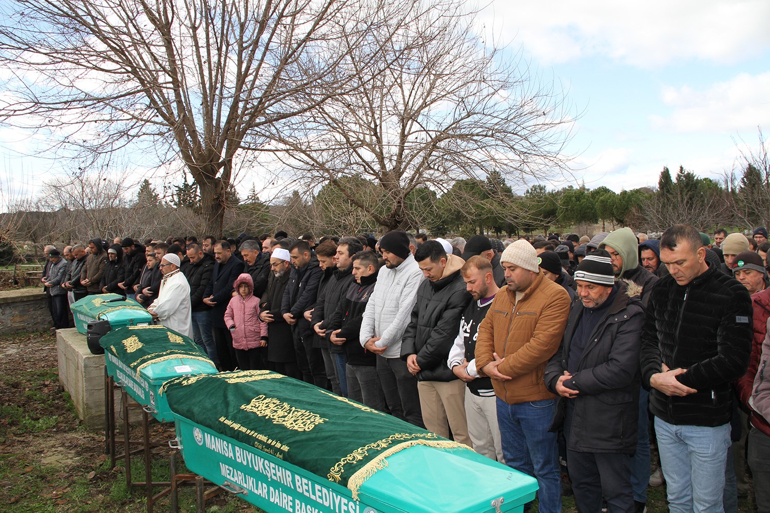 Feci kazada yaşamını Yitiren Kapucu ailesi için memleketleri Manisa’nın Kula ilçesine bağlı Körez Mahallesi’nde cenaze namazı düzenlendi. Ailenin ikamet ettiği evlerinde helallik alınmasının ardından baba, oğul ve torunun cenazeleri Körez Mahalle Camii’ne getirildi. Yoğun bir katılımla düzenlenen cenaze namazında göz yaşları sel oldu. Yaşamını yitiren Kapucu ailesi kılınan cenaze namazlarının ardından toprağa verilirken, aynı anda bir çok acıyı yaşayan Cüneyt Kapucu ise 10 yaşındaki kızı Eslim’in elini bir an olsun bırakmadı. Babası Mehmet, kardeşi Soner ve 8 yaşındaki oğlu Mehmet’i toprağa veren acılı baba, 10 yaşındaki kızı Eslim ve 2 yaşındaki oğlu Yiğit ile acısını dindirmeye çalıştı.