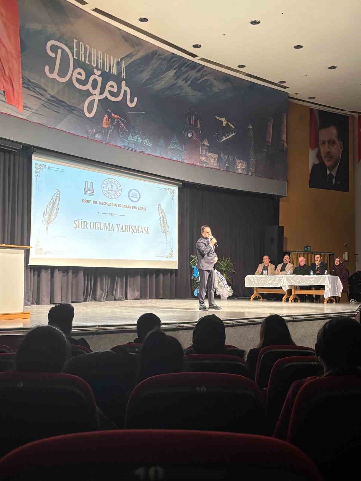 Erzurum’da Prof. Dr. Necmettin Erbakan Fen Lisesi tarafından Milli Eğitim Bakanlığınca yürütülen ‘Dilimizin zenginlikleri projesi’ kapsamında şiir okuma yarışması düzenlendi.