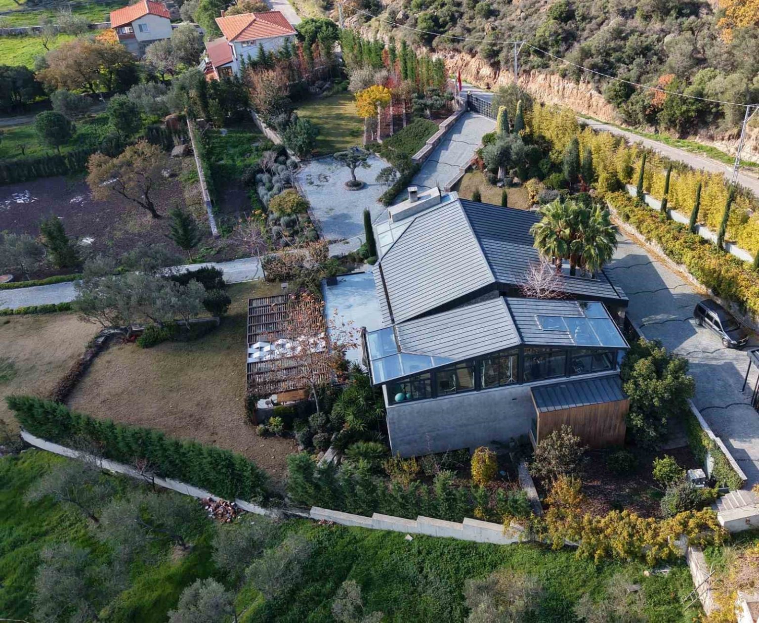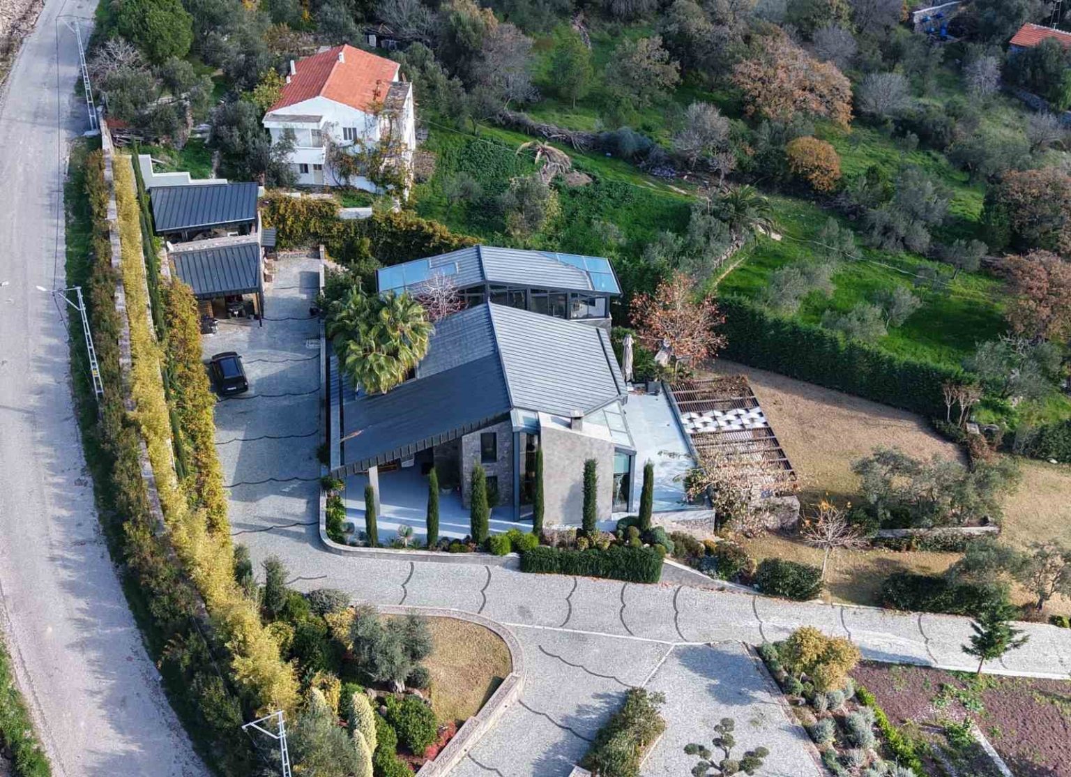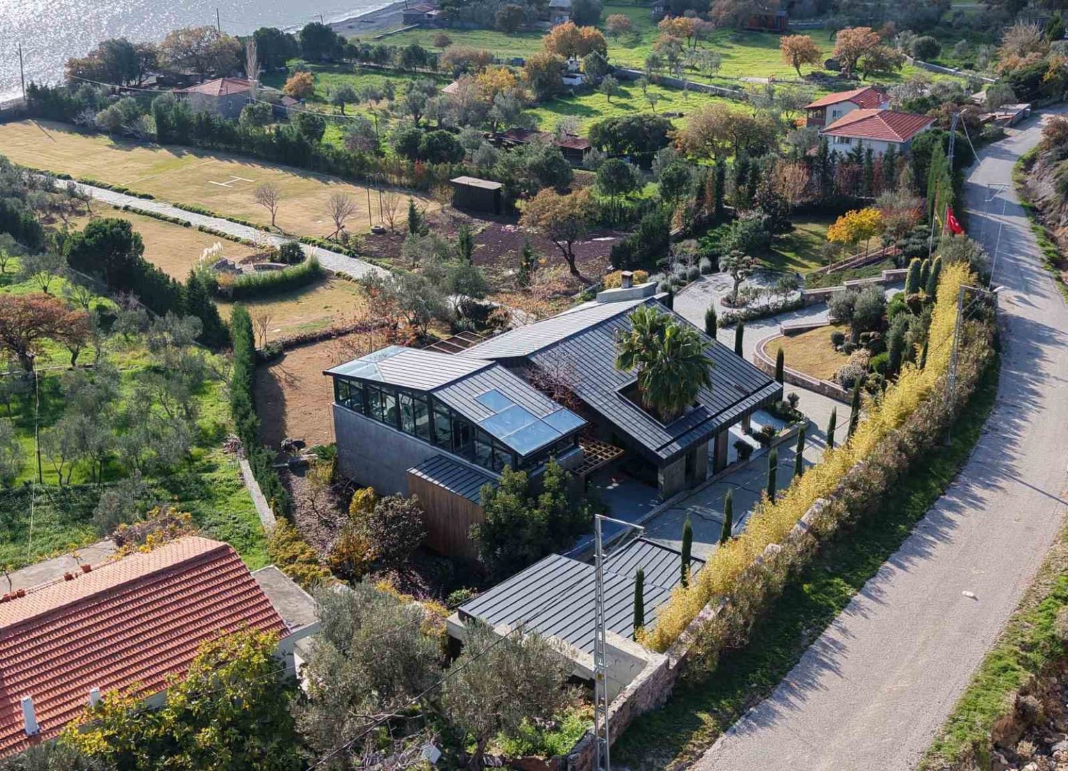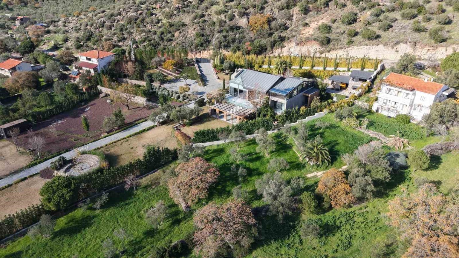 Öte yandan, Sadettin Saran’ın Kuruoba köyündeki villası dron ile havadan görüntülendi.