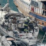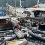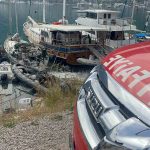 Muğla’nın Fethiye ilçesinde düzensiz göçmen kaçakçılığı yapılması nedeniyle el konulan yelkenli teknede çıkan yangın, itfaiye ekiplerince söndürüldü.
