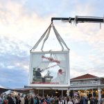 Muğla’nın Fethiye ilçesinde sıra dışı düğün organizasyonunda cam vitrine alınan gelin ve damat, tır ile Fethiye caddelerinde gezdirilirken, daha sonra düğün salonunda vinçle tırdan indirildi.