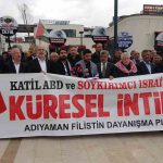 Adıyaman Filistin Dayanışma Platformu adına açıklama yapan Abdulkadir Yılmaz, “Tüm değerlerin yok sayıldığı, çiğnendiği bir zaman diliminden geçmekteyiz. İnsanlık adeta azgın ve sapkın bir ideoloji tarafından ne yazık ki rehin alınmıştır. Biz esir değiliz, bu esaret girişimine karşı kayıtsız kalacakta değiliz. Gazze’de işlenen soykırımın kahredici acısı vicdanlarda canlı dururken, Lübnan’da ve İran’da ortaya konan yeni vahşetler insanlığı bir kez daha derinden sarsmaktadır. 165 İranlı öğrencinin, Siyonist rejim tarafından okul sıralarında katledilmesi ve bu katliamın küresel vicdanda yeteri kadar yer bulmaması bizleri derinden sarssa da, bugün burada olduğu gibi dünyanın dört bir yanından yükselen itiraz sesleri bir nebze olsun umudumuzu yeşertmektedir. Açıkça ifade etmek gerekir ki; İsrail’in Filistinlilere karşı idamı yasallaştırması tam bir vahşet, açık bir hukuk ihlalidir. İşgal ettikleri toprakların gerçek sahiplerini ipe götürmeye cüret etmek demek, kendi ipini çekmekten, terör devletinin kaçınılmaz sonunu hazırlamaktan başka bir şey değildir. Bu adımın Nazi zulmünden hiçbir farkı yoktur” diye konuştu.