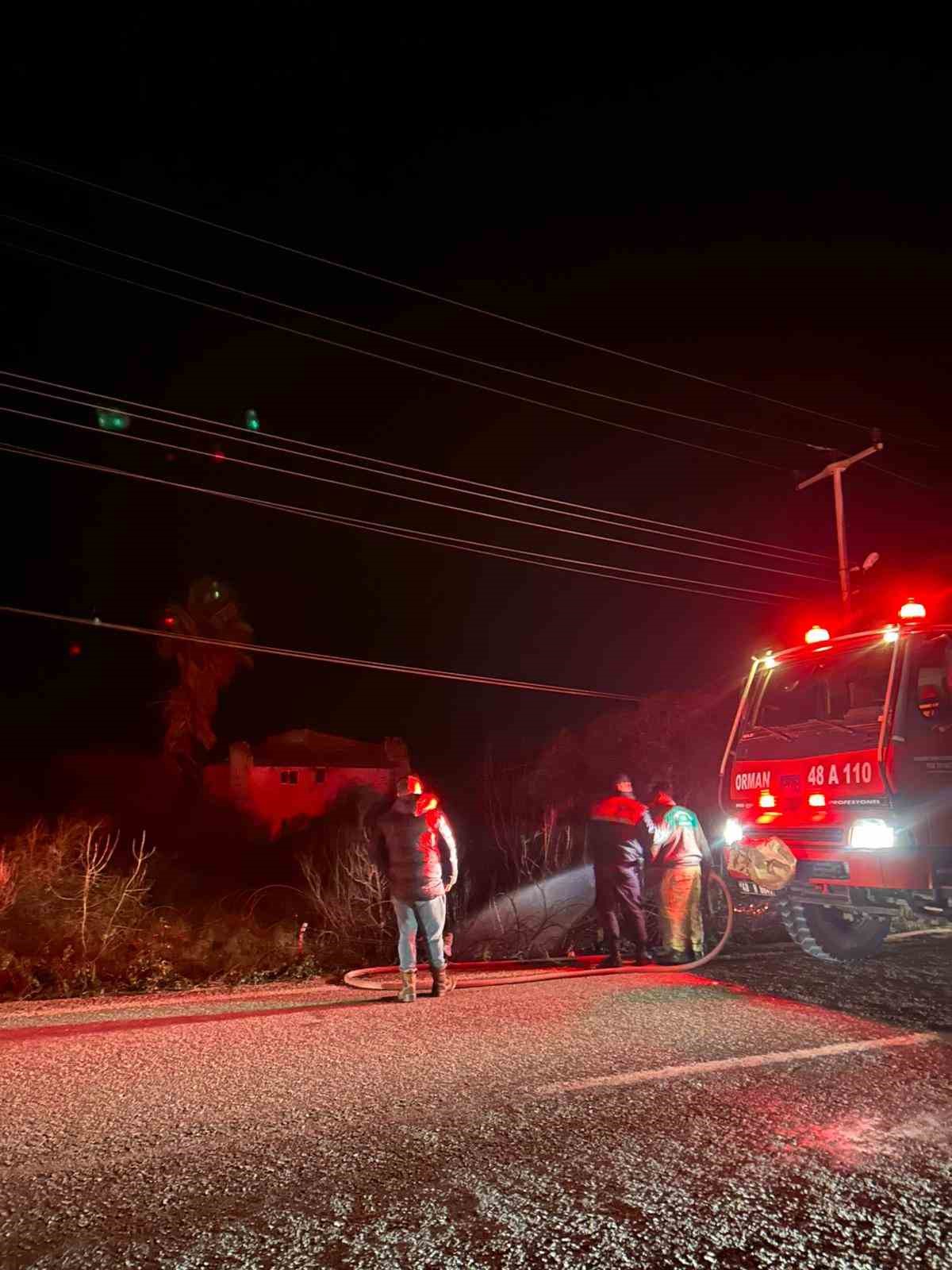 Muğla’nın Marmaris ilçesinde etkili olan fırtına sebebiyle kopan elektrik telleri, yol kenarındaki otları tutuşturdu. Çıkan yangın büyümeden söndürülürken, bazı mahalleler elektriksiz kaldı.
