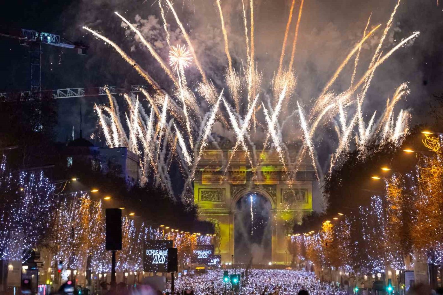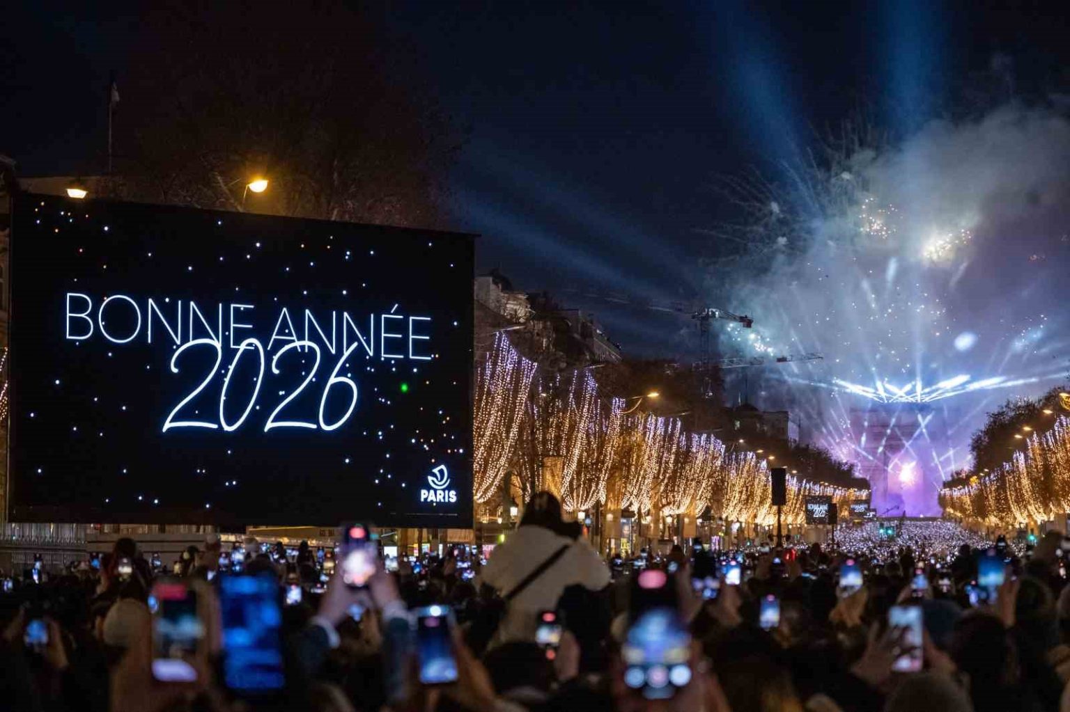 Fransa’nın başkenti Paris’te yeni yıl kutlamaları görkemli görüntülere sahne oldu. Yeni yılı karşılamak için Paris’teki dünyaca ünlü Şanzelize Caddesi’nde toplanan binlerce kişi, Arc de Triomphe (Zafer Takı) Anıtı’na yansıtılan video görüntüleri ve ışık gösterilerinin yanı sıra Eyfel Kulesi çevresindeki etkileyici ışık ve havai fişek gösterileriyle keyifli anlar yaşadı. Geri sayımın ardından binlerce kişi, Paris semalarını aydınlatan görkemli havai fişekler eşliğinde 2026’ya “merhaba” dedi.