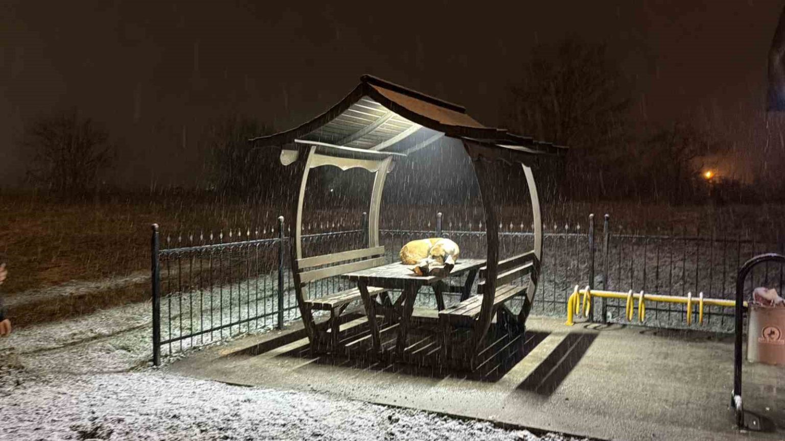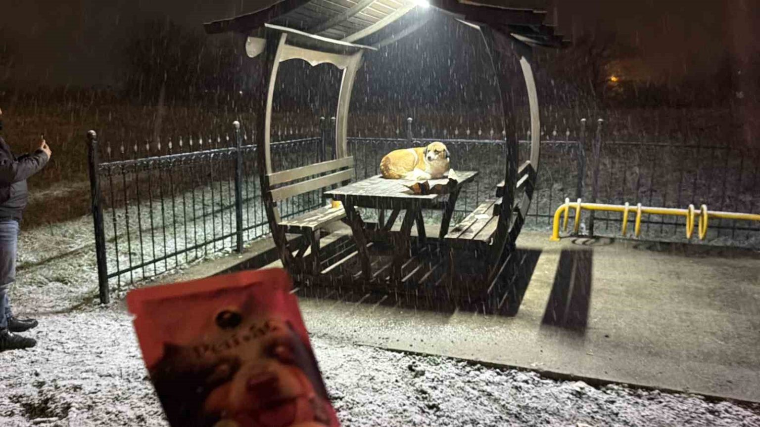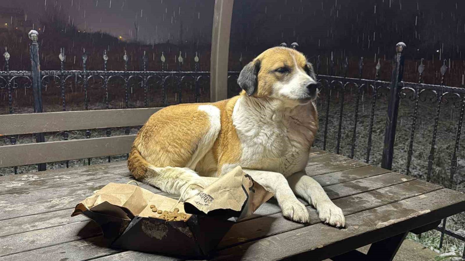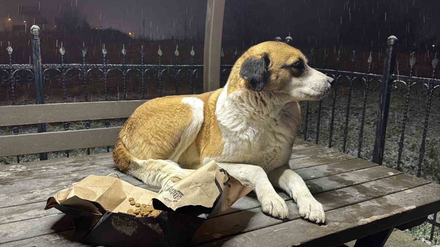 Düzce’de haber nöbeti için yollarda olan gazeteciler, kar yağışı nedeniyle yiyecek bulmakta zorluk çeken sokak canlılarına mama verdi.