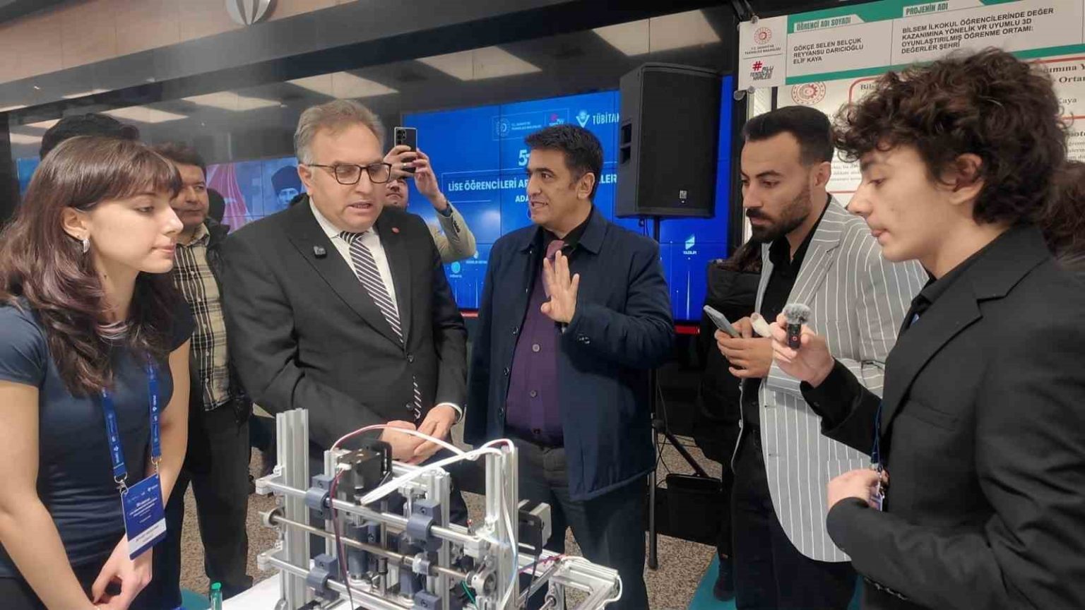 Şehitkamil Milli Eğitim Müdürü Mehmet Ali Tiryakioğlu da yarışmada sergilenen projeleri ziyaret ederek GKV Özel Okulları Genel Müdürü Fevzi Gürsel’den projeler ve yarışma hakkında bilgiler aldı.