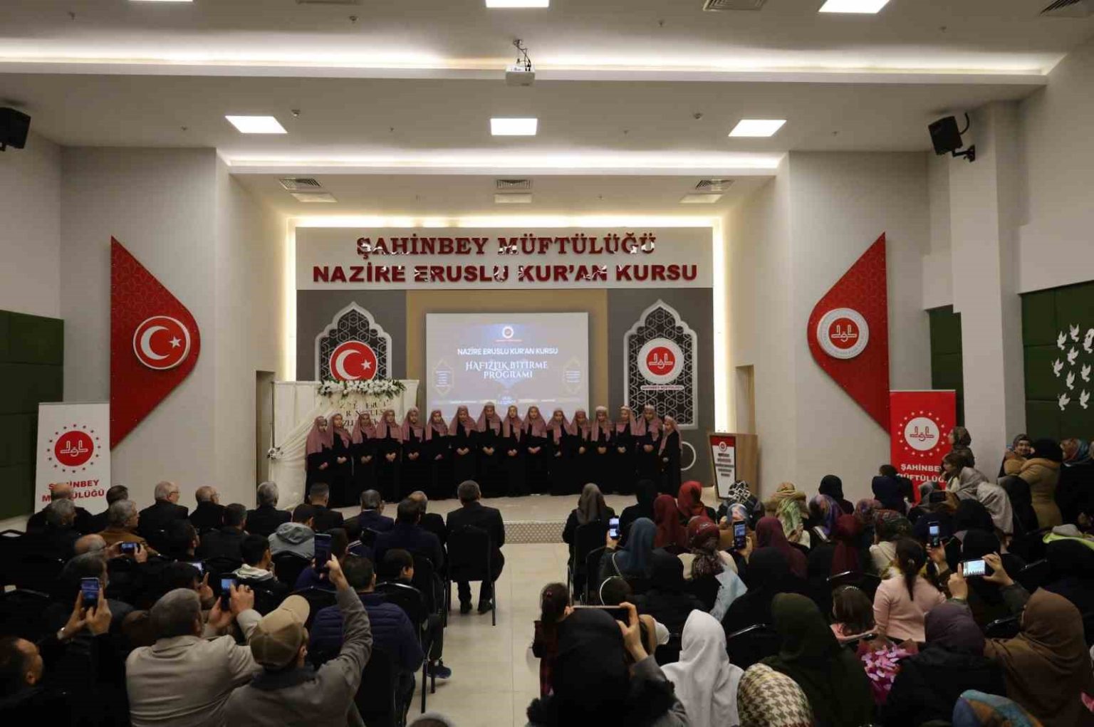 Şahinbey İlçe Müftüsü Mehmet Arslaner de, “Hafızlığı bitiren öğrencilerimizin mutluluğuna ortak olduk. Nazire Eruslu Kur’an kursumuzda hafızlığını bitiren 16 öğrencimiz ile hazırlık eğitimini tamamlayıp hafızlık eğitimine başlayan 11 öğrencimiz için program düzenledik. Öğrencilerimize başarılar diliyor, onlara emek veren çok kıymetli kurs idaremize ve Kur’an kursu öğreticilerimize teşekkür ediyoruz” diye konuştu.