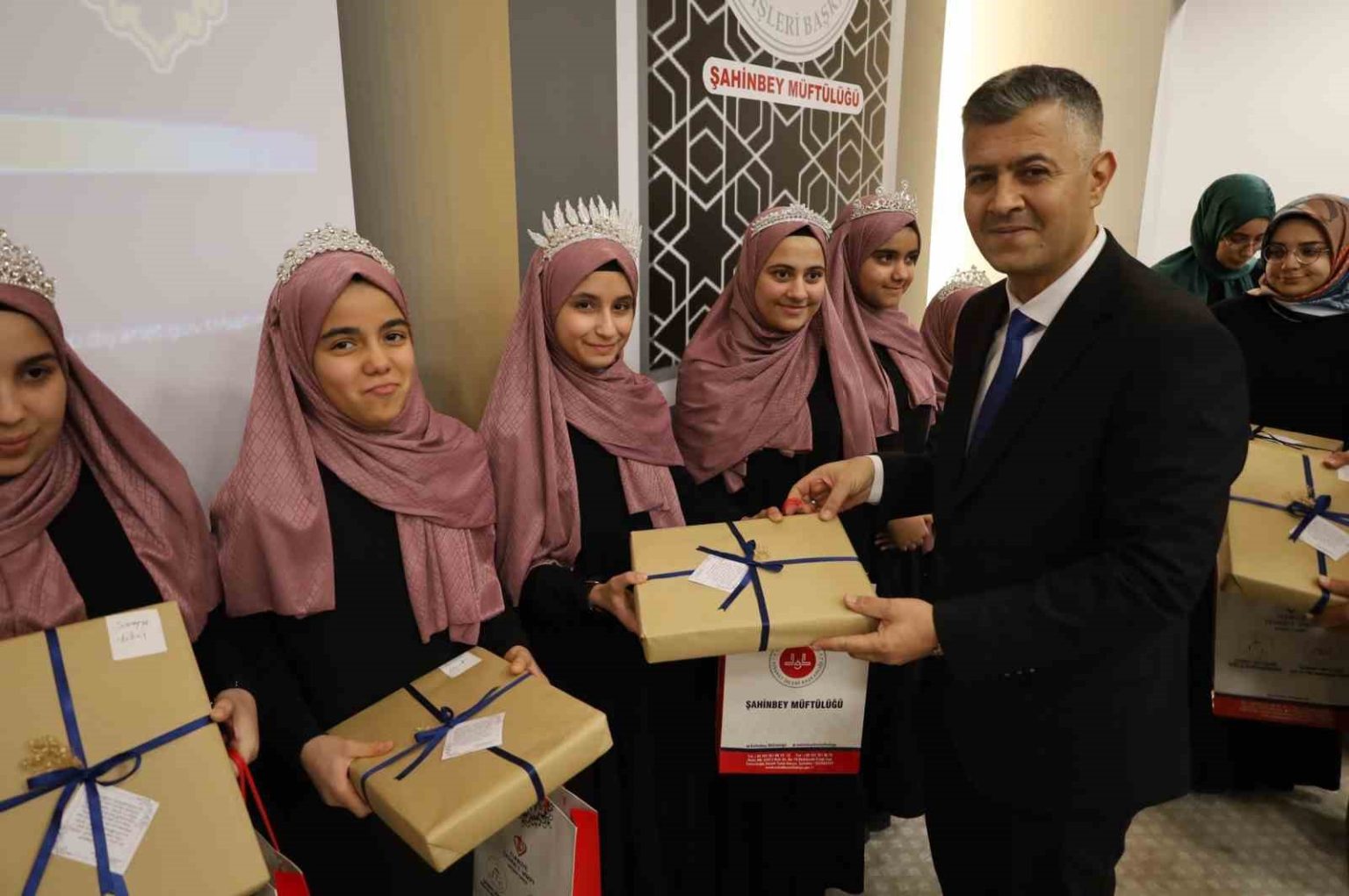 Merasime, İl Müftü Vekili Şakir Aktaş, İl Müftü Yardımcısı Aziz Aktan, Şahinbey İlçe Müftüsü Mehmet Arslaner, okul müdürleri, Kur’an kursu öğreticileri, öğrenci velileri ve öğrenciler katıldı.