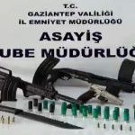 Gaziantep’te Cumhuriyet Başsavcılığı ve İl Emniyet Müdürlüğü Asayiş Şube Müdürlüğü ekiplerince çeşitli tarihlerde meydan gelen ikamet, iş yeri ve oto kurşunlama suçlarına yönelik operasyon yapıldı. Operasyonda 4 adet ruhsatsız tabanca, 2 adet ruhsatsız tüfek, 1 adet otomatik tabanca, 1 adet kurusıkı tabanca, 128 adet fişek ile bir miktar uyuşturucu madde ele geçirildi. Operasyon sonucunda olayların şüphelisi olan 9 şahıs yakalandı.