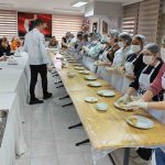 Aile ve Sosyal Hizmetler İl Müdürlüğü’nün bünyesinde barınma hizmeti alan 20 kız öğrencinin katıldığı etkinlik kapsamında öğrencilere yönelik düzenlenen içli köfte yapım atölyesinde şef Mithat Babacan, öğrencilere içli köfte yapımını öğretti.