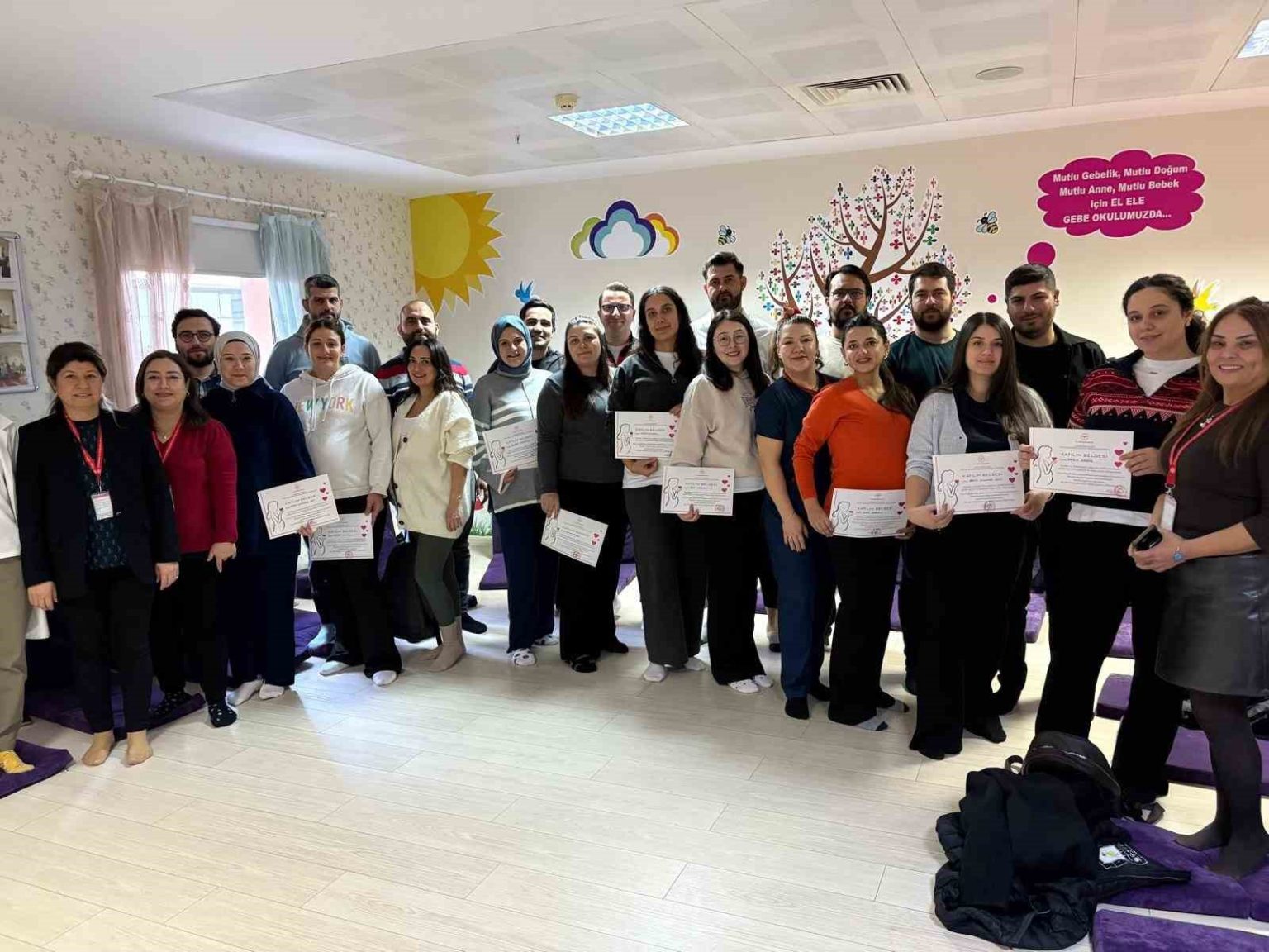 Aydın Kadın Doğum ve Çocuk Hastalıkları Hastanesi bünyesindeki Gebe Okulu’nda farklı branşlardan uzmanların verdiği eğitimleri başarıyla tamamlayan anne adaylarına katılım belgeleri verilirken, eğitimlerin yeni gruplarla devam ettiği bildirildi.