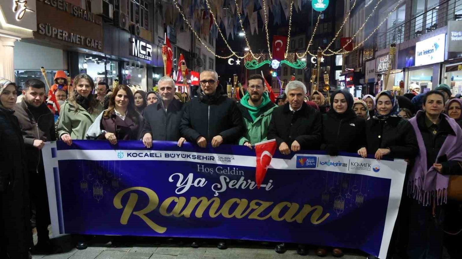 Büyükşehir Belediyesi tarafından organize edilen Ramazan etkinlikleri kapsamında Gebze Eskiçarşı’dan başlayan yürüyüş Kent Meydanı’nda sona erdi. Etkinliğe Kocaeli Büyükşehir Belediyesi Başkan Vekili Hasan Soba, Kadın ve Aile Hizmetleri Dairesi Başkanı Nagehan Malkoç, sivil toplum kuruluşu temsilcileri ve çok sayıda vatandaş katıldı. Vatandaşların ellerinde fenerler ve Türk bayraklarıyla katıldığı yürüyüşün ardından, Gebze Kent Meydanı’nda kurulan Ramazan etkinlik çadırında program gerçekleştirildi.