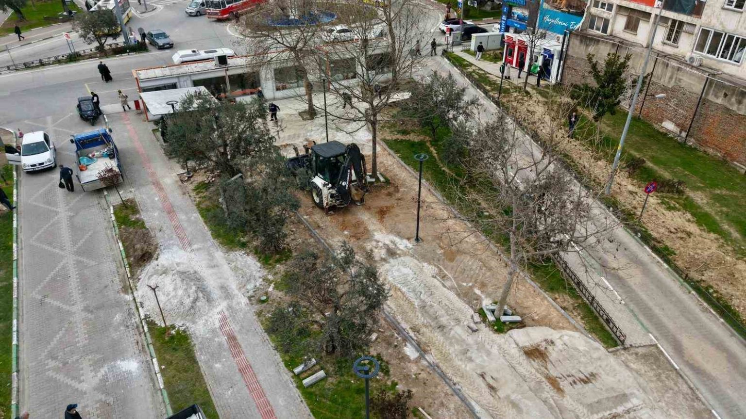 Gemlik Belediyesi’nden çarşı meydanında düzenleme çalışması