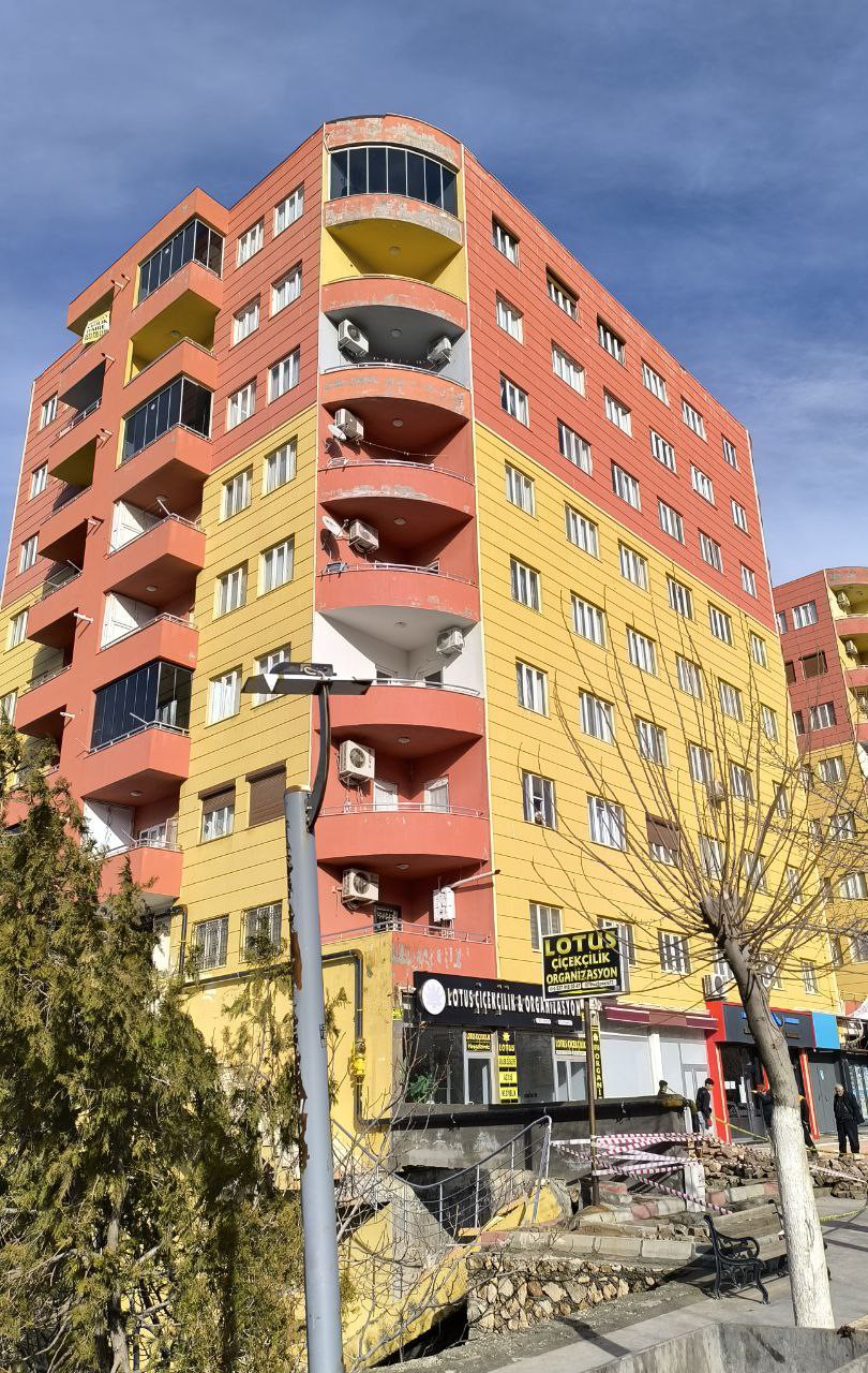 Gercüş’te vatandaşların korku dolu anlar yaşamasına neden olan olayda, 12 katlı bir binanın giriş kısmındaki beton merdiven blokları henüz bilinmeyen bir nedenle yerinden koparak düştü. Çökmenin şiddetiyle binanın girişinde derin bir çukur oluşurken, çevre sakinleri deprem olduğunu sanarak panikle dışarı çıktı. 12 katlı olan ve çok sayıda kişinin yaşadığı binada, saniyelerle ölçülebilecek bir farkla büyük bir facianın eşiğinden dönüldü. İki girişi bulunan binadaki vatandaşlar tedbir amacıyla apartmandan çıkartıldı.