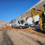 İlçeye bağlı Rüzgarlı köyü mevkiinde hayvanları için yem almaya giden göçerlerin kamyoneti, yoğun kar yağışı ve buzlanma nedeniyle yolda saplanıp kaldı. Kendi imkanlarıyla araçlarını kurtaramayan göçerler, durumu Rüzgarlı köy muhtarı Mehmet Emin Biçen’e bildirdi. Biçen’in vakit kaybetmeden İlçe Özel İdare ekiplerine haber vermesi üzerine bölgeye hızla iş makineleri sevk edildi. Kısa sürede olay yerine ulaşan ekipler, karla kaplı yolu temizleyerek mahsur kalan kamyoneti saplandığı yerden kurtardı. Donma tehlikesine ve mağduriyete karşı zamanında müdahale eden ekipler, yolun güvenliğini sağladıktan sonra bölgeden ayrıldı.