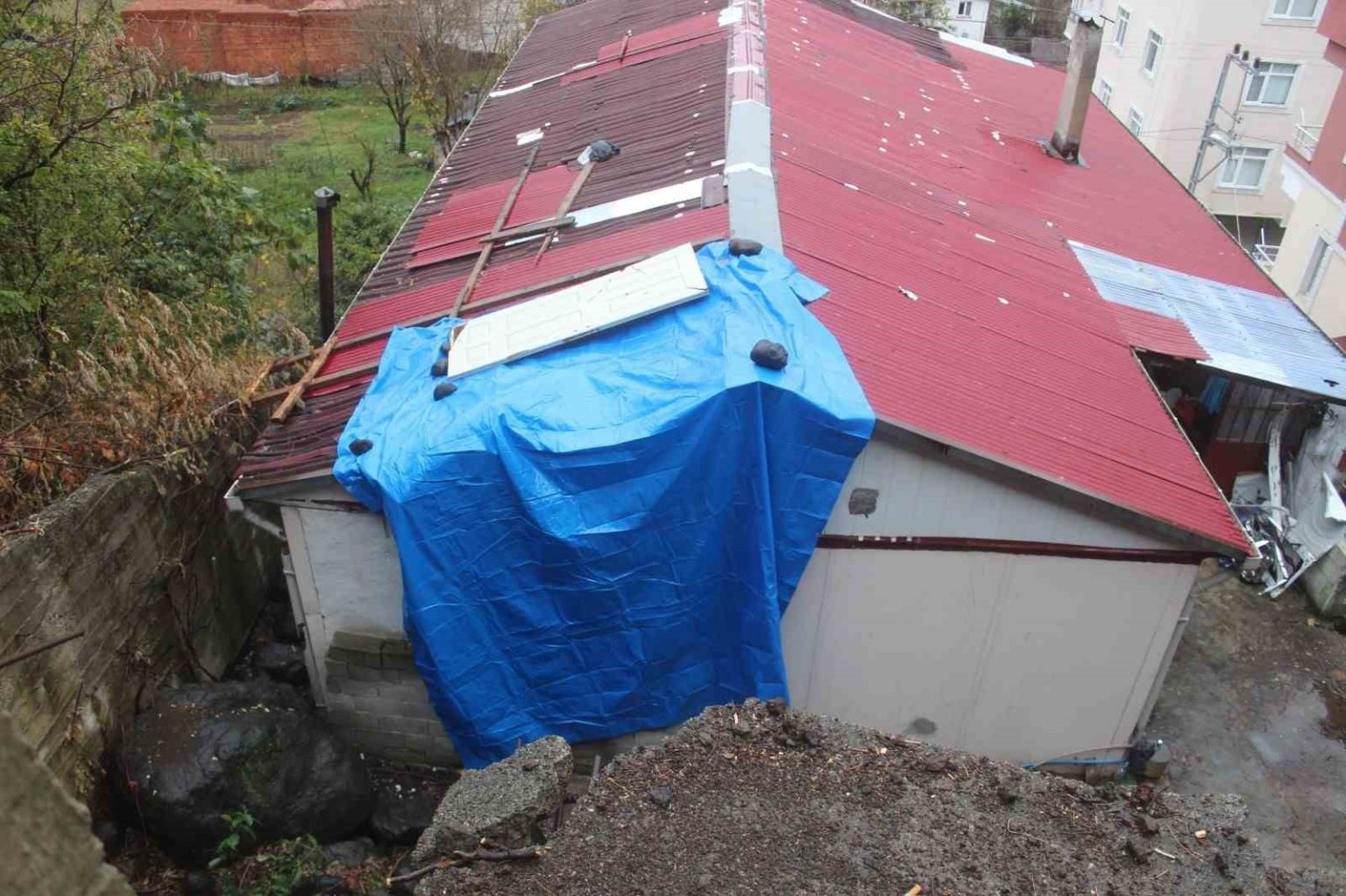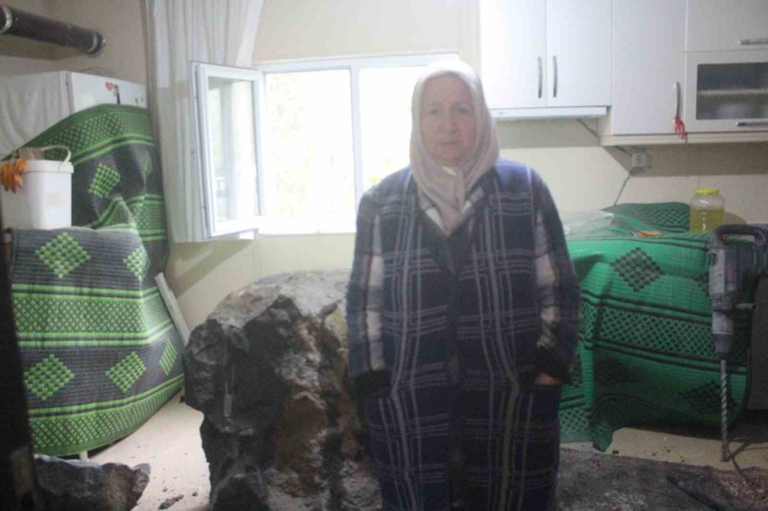 Görele ilçesi Bahçelievler Mahallesi’nde riskli bölgedeki kayaların parçalanarak kaldırılması için çalışma başlatıldı. Çalışmalar sırasında kopan bir kaya parçası, yuvarlanarak Güzel Korkmaz’a ait evin çatısından içeri girerek maddi hasara yol açtı. Kopan kayanın eve girdiğini gören Güzel Korkmaz büyük şaşkınlık yaşadı.