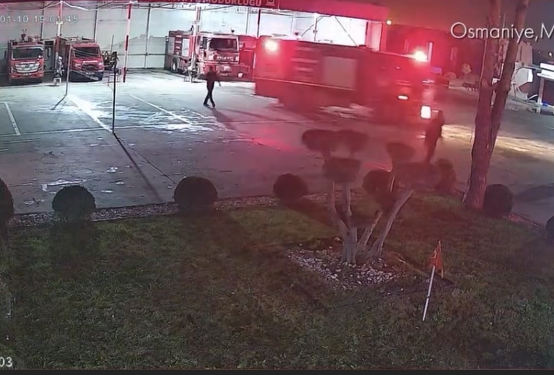 Osmaniye’de itfaiye ekipleri, dinlenme anlarında Galatasaray-Fenerbahçe Süper Kupa Finali’ni izlerken yangın ihbarı geldi. Çalan sirenle yerlerinden fırlayan personel hızla araçlara yöneldi. Kısa sürede hazırlanan ekipler, ihbar gelen adrese müdahale etmek üzere istasyondan çıkış yaptı. O anlar, istasyonun güvenlik kamerasına da yansıdı.