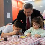 Gölbaşı Belediye Başkanı Yakup Odabaşı, 100. Yıl Buz Pateni ve Tırmanma Spor Salonu ile Zübeyde Hanım Aile Yaşam Merkezi Sergi Salonu’nda çocukların hem eğlenmesi hem de sanatsal ve sosyal gelişimlerine katkı sunmak için düzenlenen çocuk şenliği alanını ziyaret etti. Çocukların neşesine ortak olan Odabaşı, sohbet ettiği çocukların oyunlarına eşlik ederek, atölye çalışmalarını inceledi. Şenlikte çocukların hayal dünyasını ve el becerilerini geliştirmeye yönelik yağlı boya, kara kalem, kumlama, çini sanatı, kokulu taş boyama ve yüz boyama gibi birbirinden renkli sanat atölyeleri düzenleniyor. Bunun yanı sıra mangala, 3 taş-9 taş oyunları, kule oyunu, el-ayak koordinasyon oyunları, şişme oyun grupları, top havuzu ve uzay çadırı gibi pek çok eğlenceli aktiviteyle çocuklar doyasıya eğleniyor.