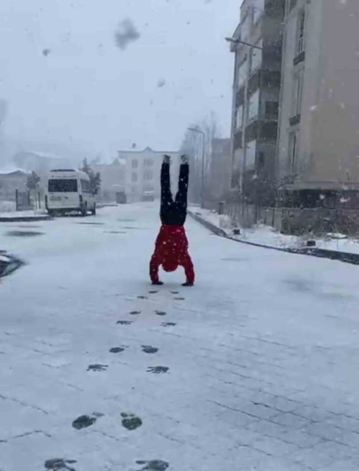 Kar yağışını çok sevdiğini belirten Osman Ismak, “Terme’de kar yağışını görünce sevincimi bu şekilde göstermek istedim. Spor benim yaşam biçimim” dedi.
