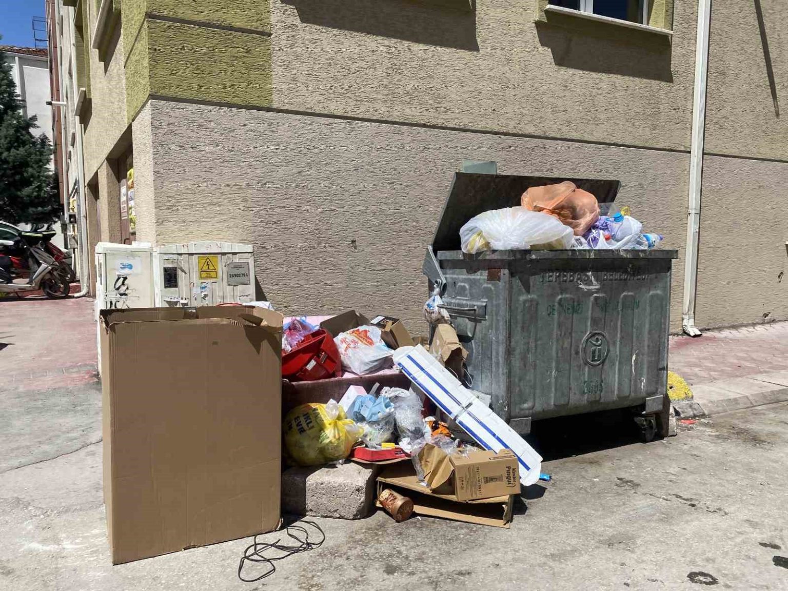 Eskişehir’de konteynırlardan taşıp yola dökülen çöp yığınları sokakta kirliliğe yol açarak vatandaşlara rahatsızlık veriyor.
