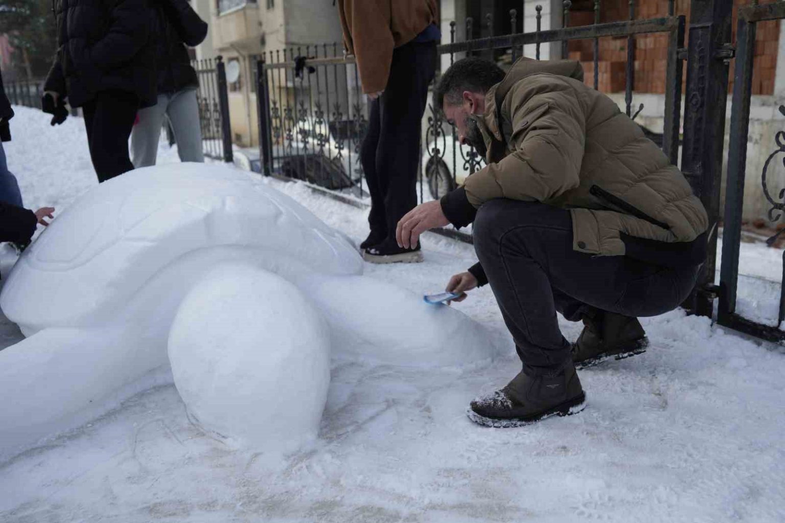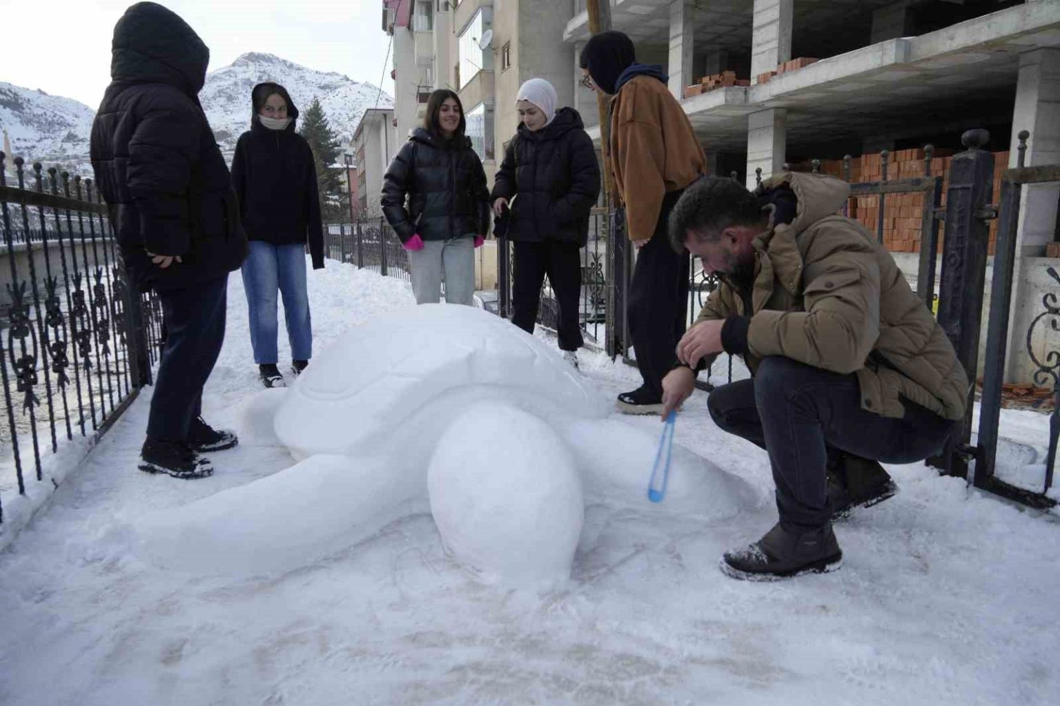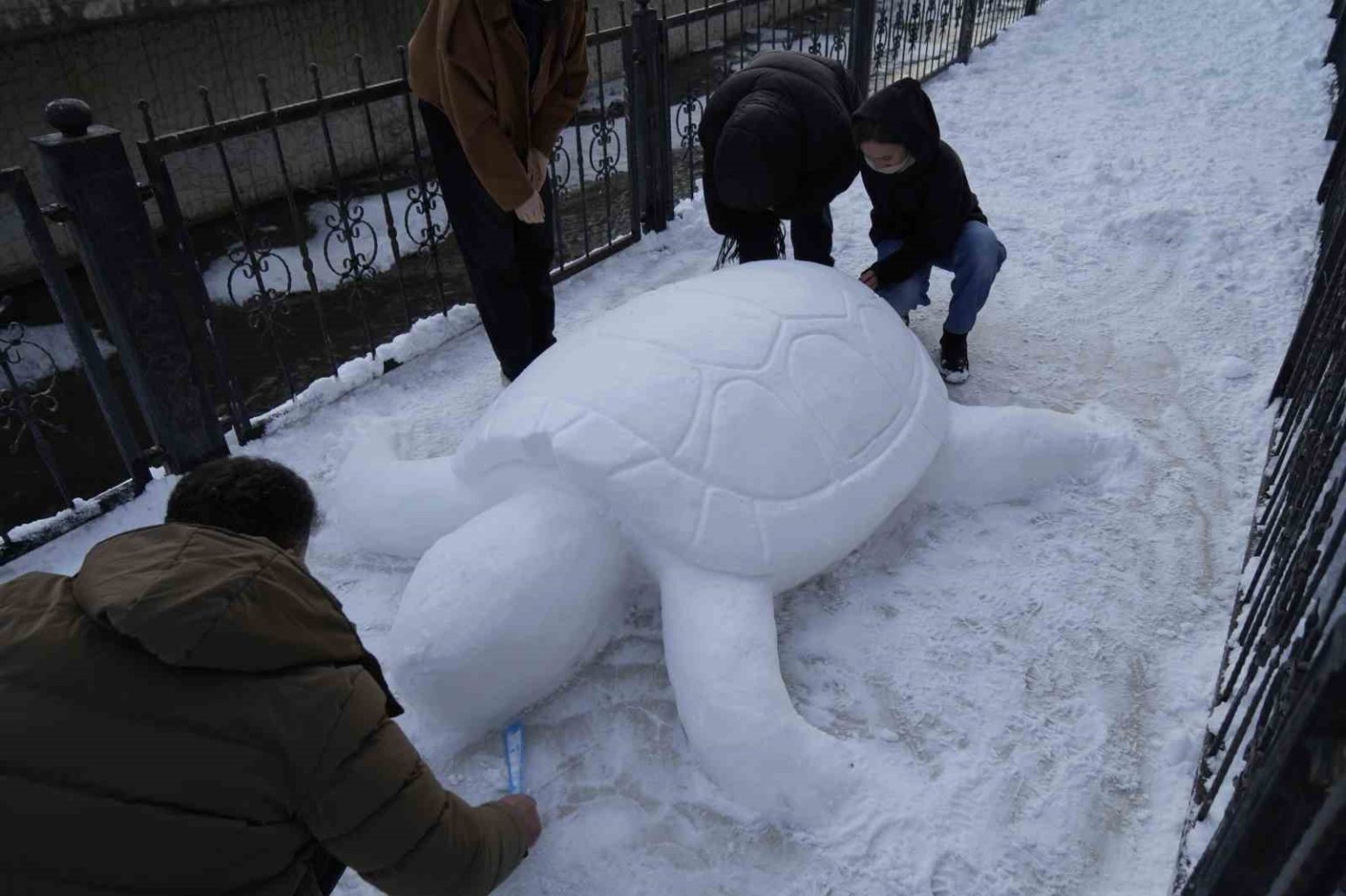 “4 saatlik çalışmayla kardan kaplumbağa yaptık”