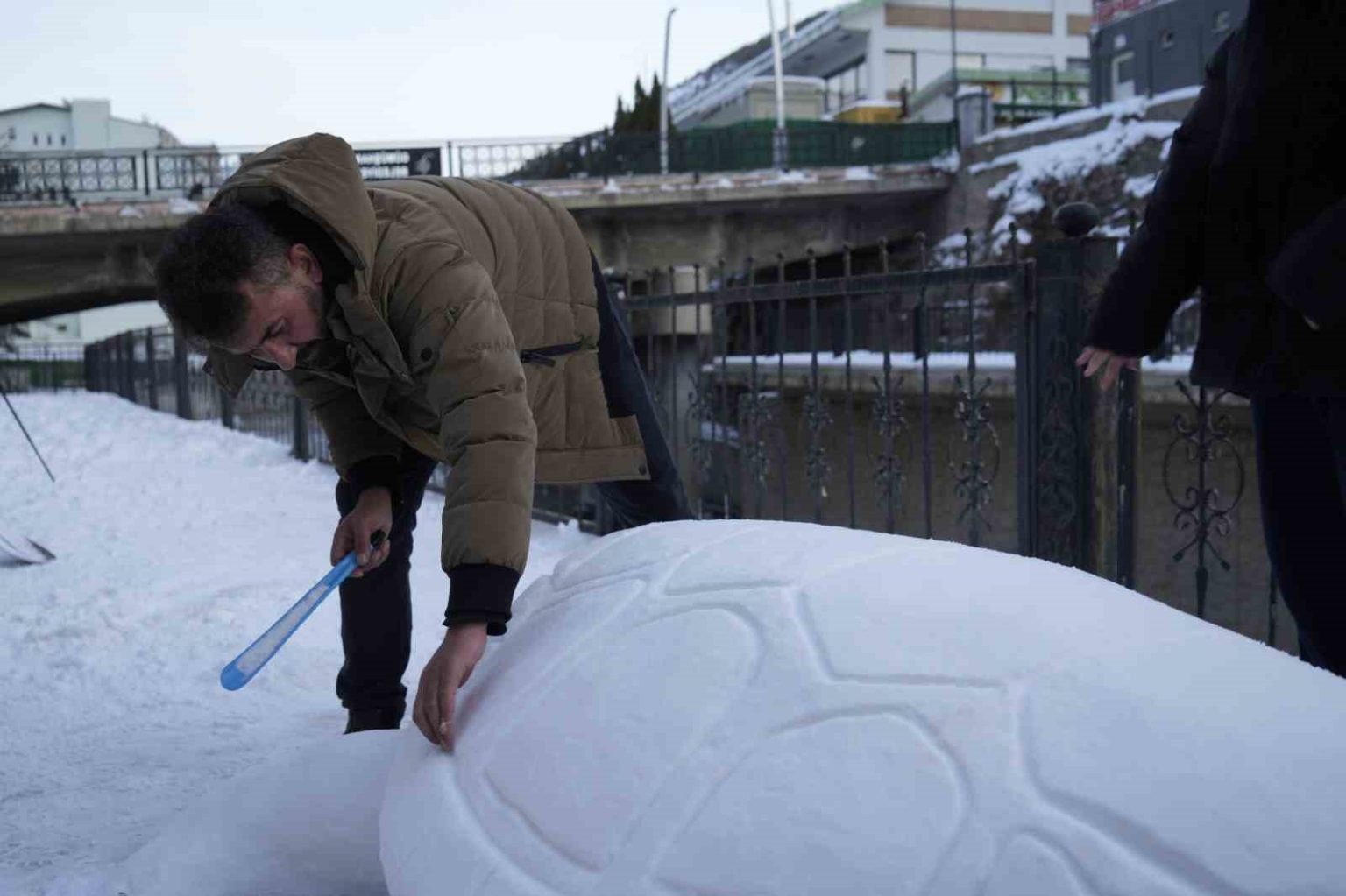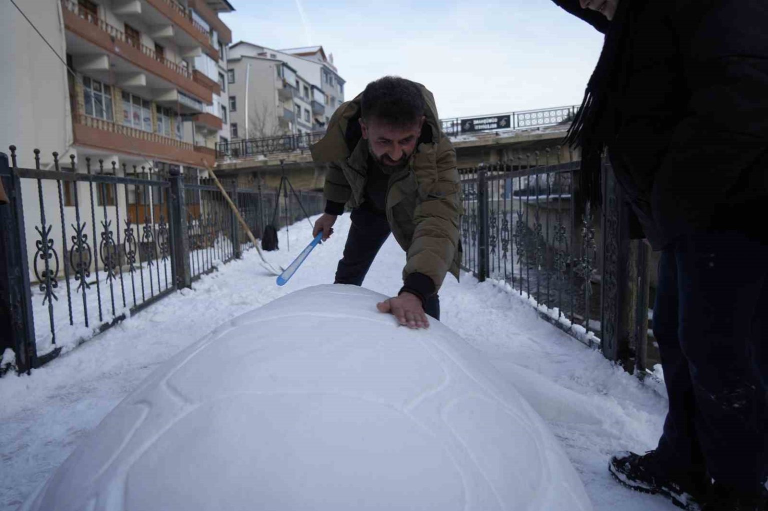 Cihan Oral’ın kızı Hilal Oral da, “Babam bu tür şeyleri çok yapıyor. Bu hafta sonunu böyle geçirmek istedik. Öğle arası başladık anca bitirebildik ancak çok güzel geçti. Daha önce de köyde tanklar yaptı, adamlar yaptı. Biraz zorlandık karları toparladık buraya getirdik” diye konuştu.