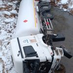 Gümüşhane’nin Kelkit ilçesinde meydana gelen kazada, 34 DR 4897 plakalı LPG yüklü tanker, yolların kaygan ve buzlu olması nedeniyle sürücüsünün direksiyon hâkimiyetini kaybetmesi sonucu yolun alt kısmındaki dere yatağına devrildi.
