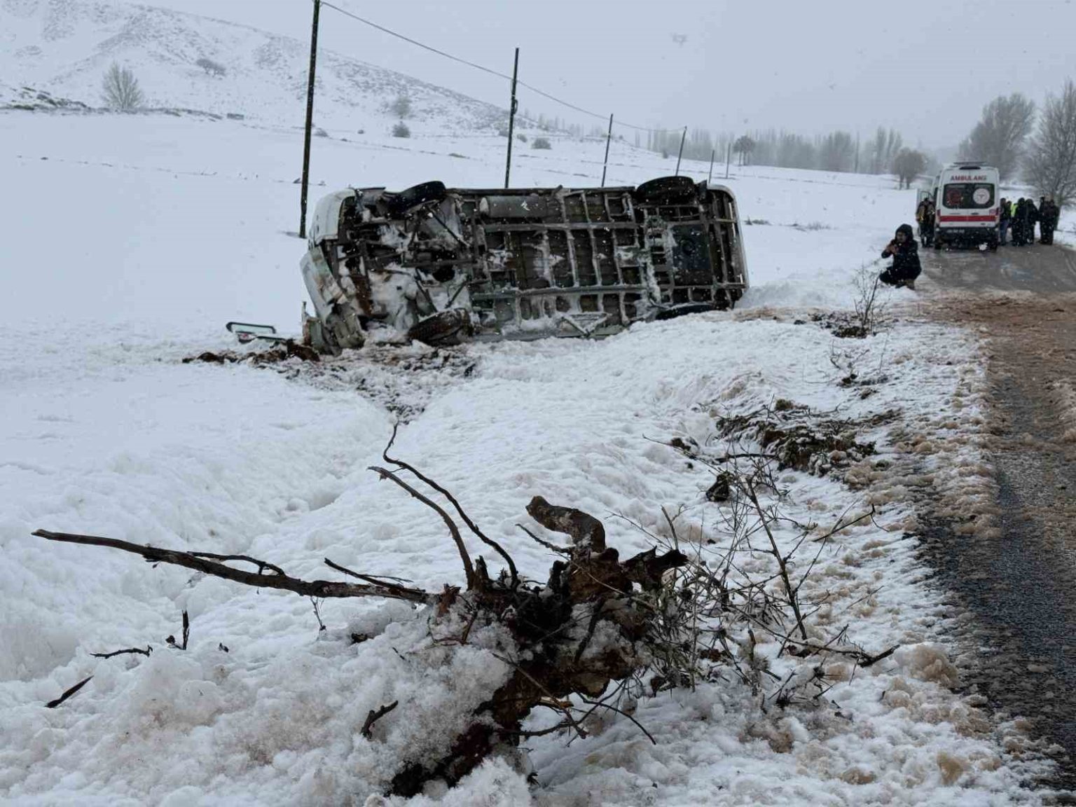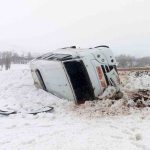 Sivas’ta öğrenci servisi kar ve yoldaki buzlanma nedeniyle şarampole devrildi. Kazada sürücü ve 13 öğrenci yaralandı.