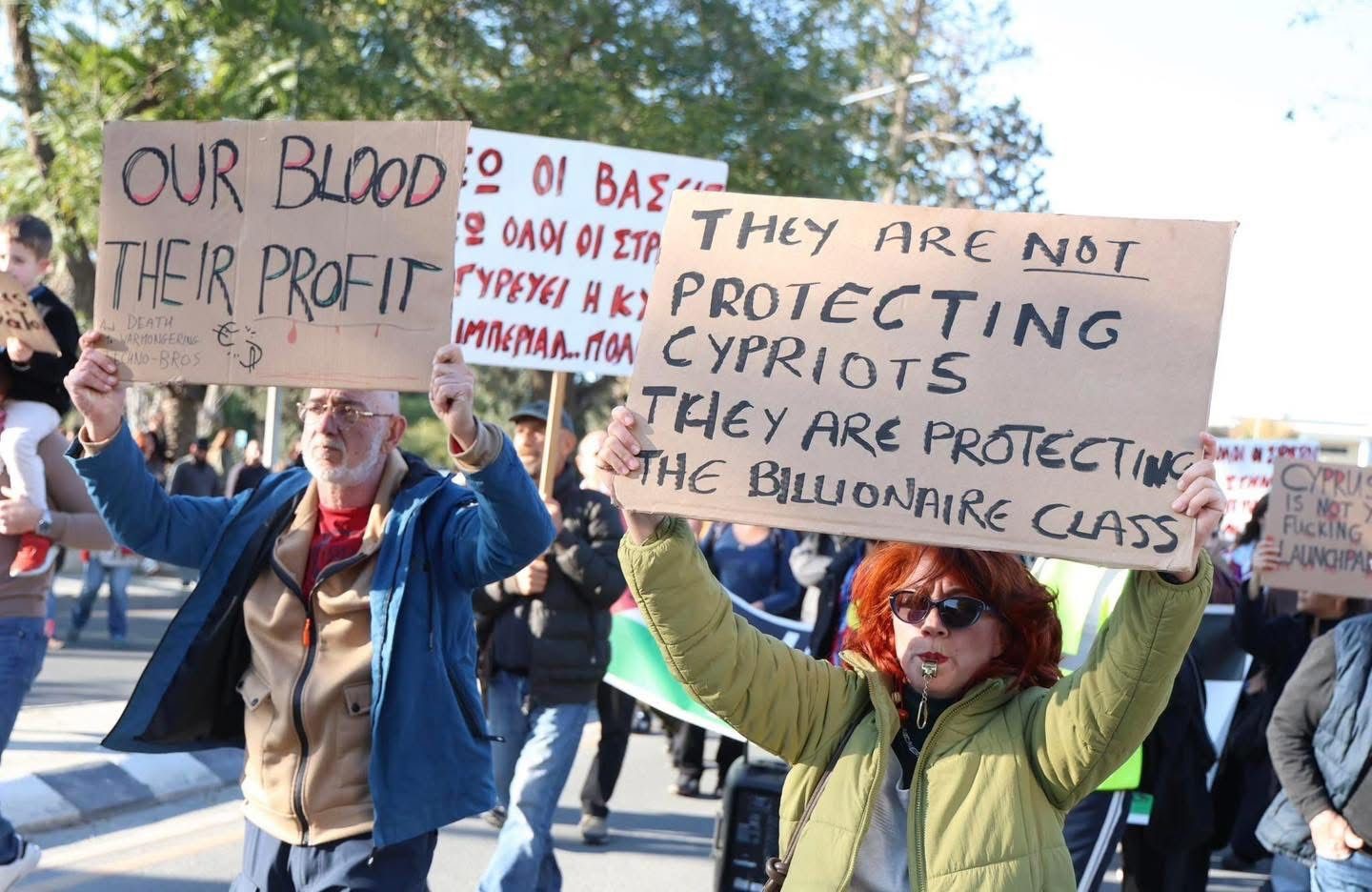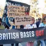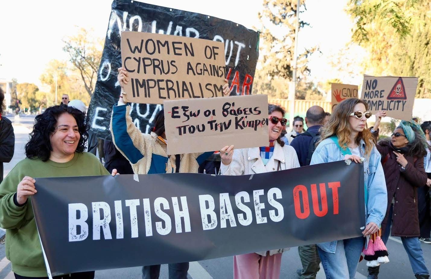 Güney Kıbrıs Rum Yönetimi’nin (GKRY) başkenti Lefkoşa’da, bölgedeki İngiliz askeri üslerine yönelik düzenlenen protestolarda göstericiler, “Kıbrıs fırlatma rampanız değil” sloganları attı.