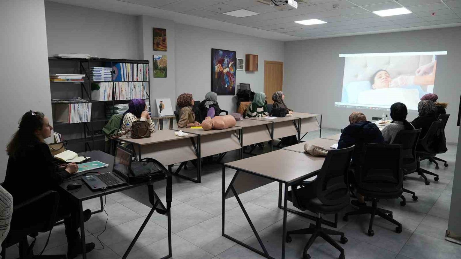 Bu ihtiyaca yönelik çalışma hazırlayan Gürsu Belediyesi Kadın ve Aile Hizmetleri Müdürlüğü ile Gürsu Halk Eğitim Müdürlüğü ortak çalışması olarak başlayan kurs on hafta sürecek. Merve Özdemir eğitmenliğinde başlayan kursa 14 kadın kursiyer katıldı. 10 hafta sürecek eğitim Gürsu Kültür Merkezi’nde düzenleniyor. Kursiyerler hasta ve yaşlı bakımı konusunda çok ayrıntılı bir eğitime tabi tutuluyor. Kişisel bakım, öz bakım, psikolojik ve sosyal destek gibi birçok konuda ders alan kursiyerler kamu ve özel kurumlardaki iş ihtiyacına cevap verecek.