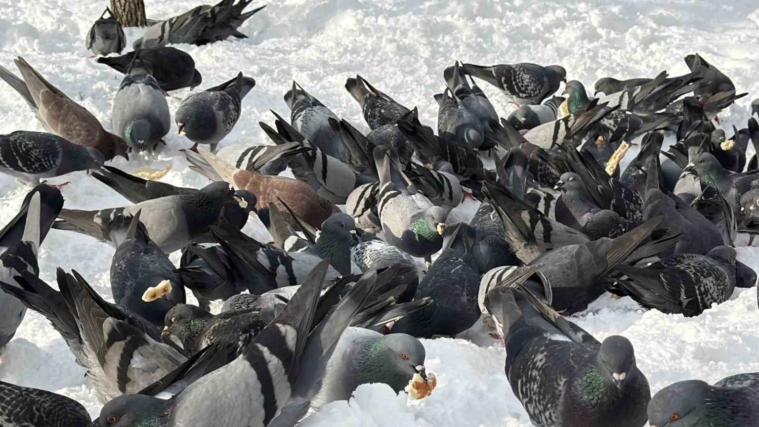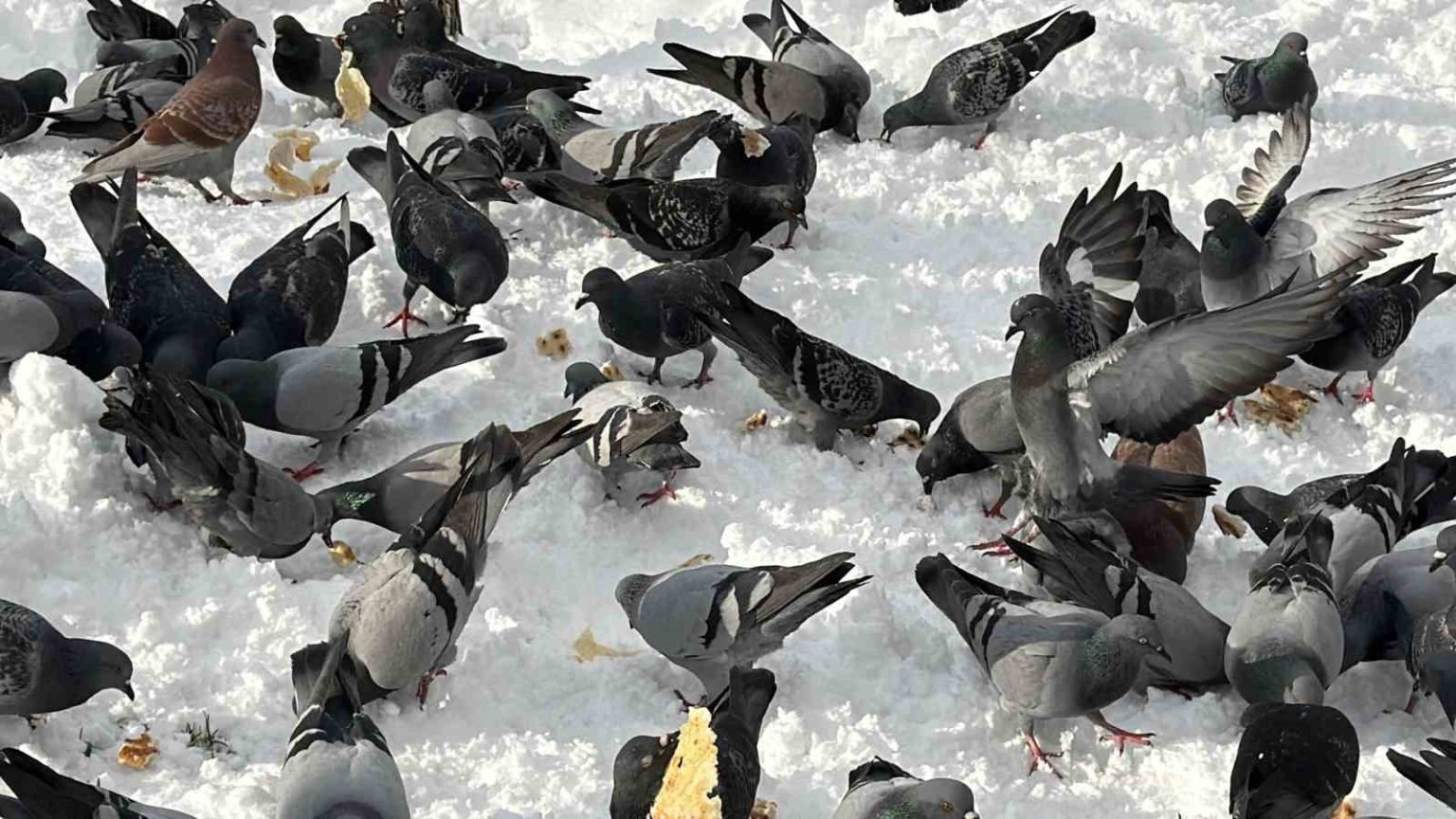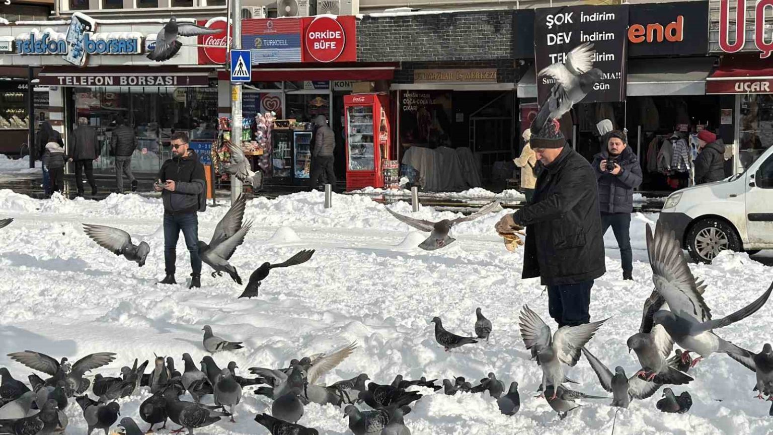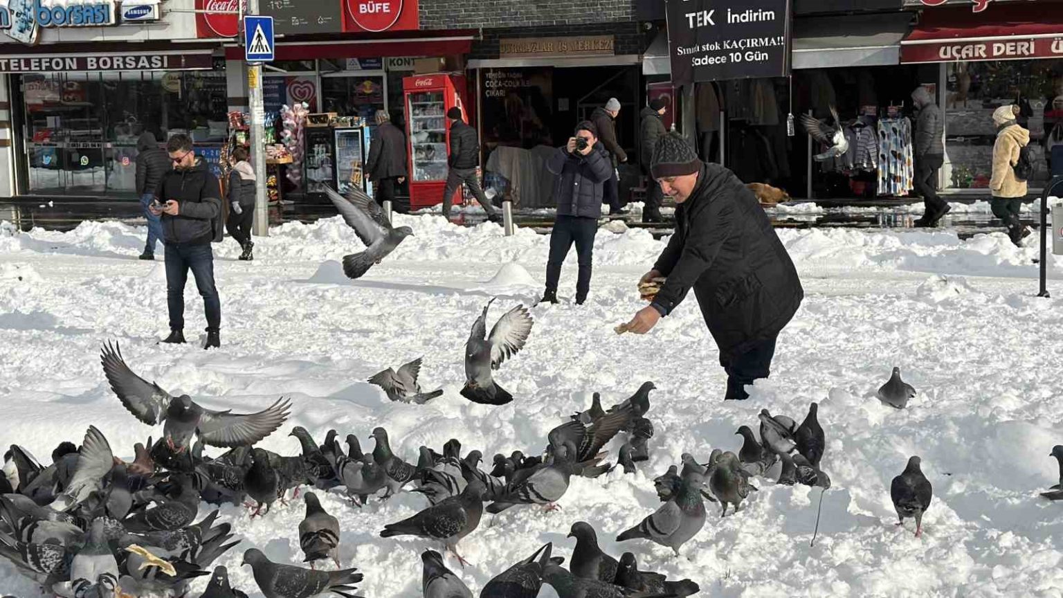 Düzce’de kar sebebi ile yemek bulmakta güçlük yaşayan güvercinleri bir vatandaş marketten ekmek alarak beslemesi yürekleri ısıttı.