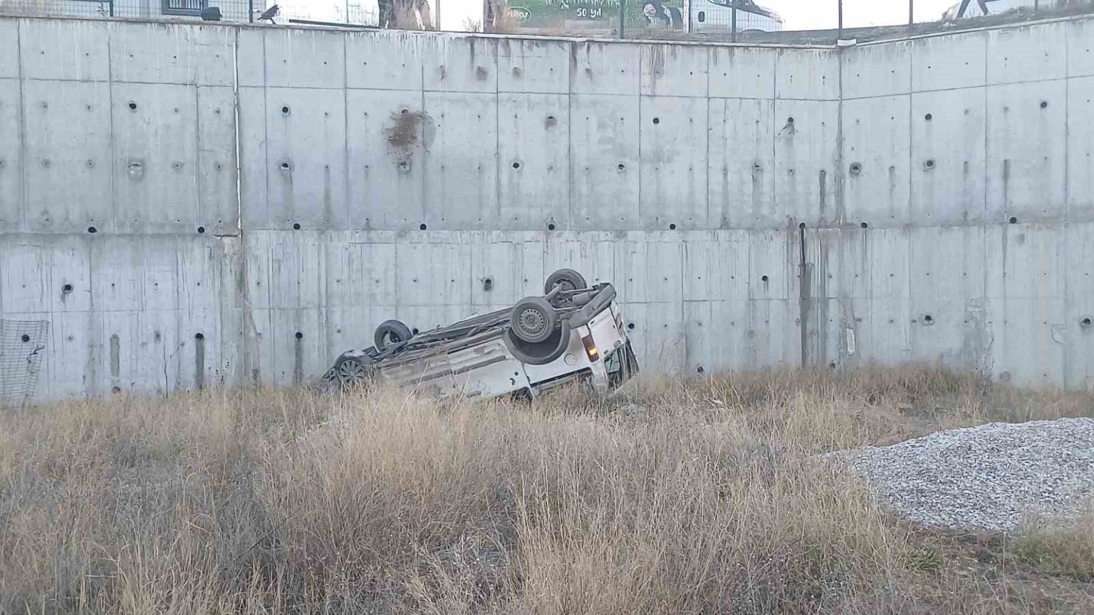 Hafif ticari araç 8 metrelik istinat duvarından sahaya uçtu: 1 ağır yaralı