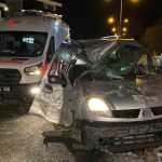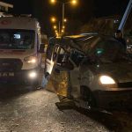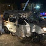 Hafif ticari araç direğe çarptı: 1’i ağır 4 yaralı