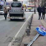 Hafif ticari araç kaldırıma çıktı, trafik levhası ve dubayı devirdi
