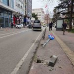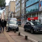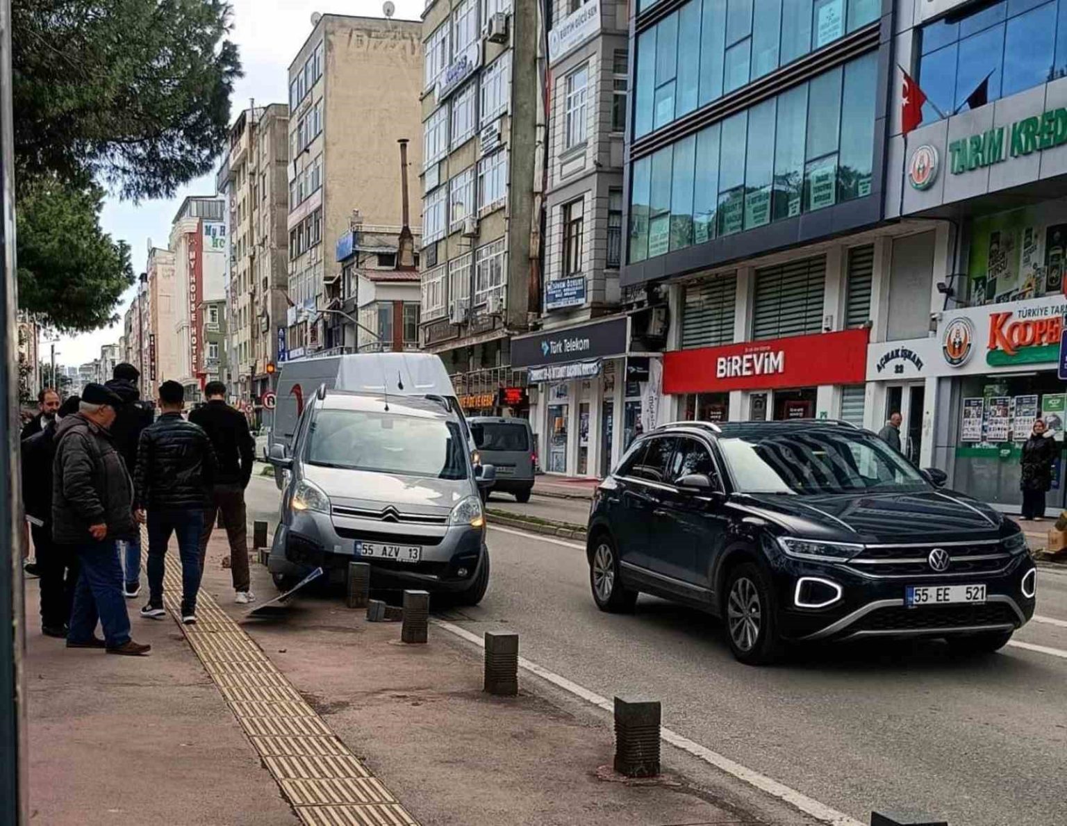 Samsun’da sürücüsünün direksiyon hakimiyetini kaybettiği hafif ticari araç, kaldırıma çıkarak trafik levhası ve taş dubayı yıktı.