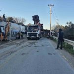 Muğla’nın Bodrum ilçesinde yol kenarındaki çukura giren hafriyat kamyonu devrilirken, yolun trafiğe kapandığı kazada 1 kişi yaralandı.